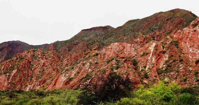 Ce matin donc nous nous préparons et après quelques courses nous roulons vers Cafayate, petite ville sympa à la sortie de la "Quebrada de Las Conchas" , réputée pour ces vins que j'apprécie tout particulièrement, et qui est agréable à vivre. Nous partons sous les nuages, le plafond est très bas et nous allons avoir une pluie très fine durant un long moment. Petit à petit le soleil revient et nous pouvons traverser la Quebrada avec quelques couleurs sur les montagnes, c'est toujours aussi beau. Arrivés à Cafayate nous nous rendons directement au camping "Luz y Fuerza" où nous étions venus il y a cinq ans, pas grand monde en cette période et en pleine semaine nous serons au calme. Fin de journée à nous reposer car ce matin nous étions levés à 5h00 pour appeler notre banque en France afin de faire un virement pour le bateau, alors ce soir dodo assez tôt.