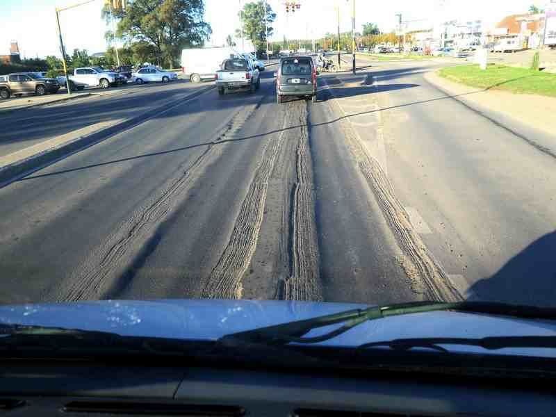 Rien de spécial ce jour sinon que nous roulons toujours au sud vers Cordoba. La route nous fait passer par un col au dessus de 3100 mètres puis redescendre vers la vallée à 600 mètres d'altitude. Nous aurons monté de 1500 mètres depuis Cafayate et redescendu de 2500 mètres autant dire que les virages furent nombreux. La montagne est loin derrière nous maintenant et bientôt nous serons au niveau de la mer en Uruguay vers Colonia. Les longues lignes droite et le trop plein de camions et d'autobus font qu'il est nécessaire d'être très vigilant, en plus la route est déformée et les sillons nous déportent sans prévenir et ne parlons pas des trous qui se comptent par centaine et qu'il faut essayer d'éviter, bref route guère passionnante. Nous finissons par faire un stop à Dean Funes afin de dormir et nous bivouaquons derrière une "gomeria", relativement tranquille.
