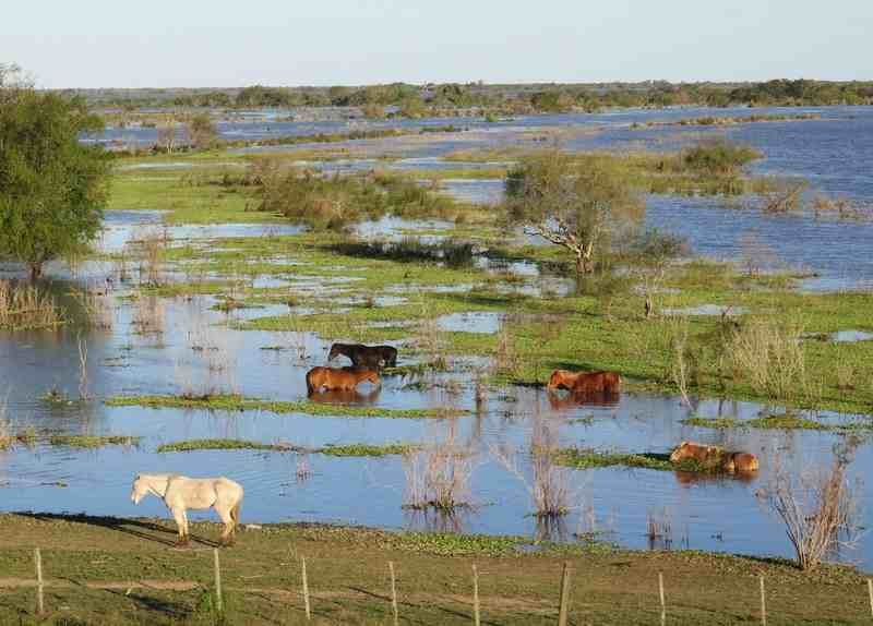 Après une nuit correcte nous reprenons tranquillement notre route vers l'est et la frontière de l'Uruguay, nous quittons Victoria à 8h15, 400km à faire avant notre étape du soir. la route est toujours en aussi mauvais état avec plus de trous et cela ne va pas s'arranger tout au long de cette journée. Maintenant nous sommes en pleine campagne avec beaucoup de marais et la chance de continuer à voir de beaux oiseaux mais toujours impossible de faire des stops. Nous nous régalons avec les cigognes, les ibis, les caracaras, des tas d'oiseaux que nous ne connaissons pas, c'est superbe. Nous finissons par arriver au pont qui traverse le Rio Uruguay et après c'est la frontière, nous passons en Uruguay en fin de matinée.