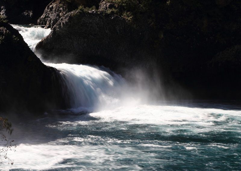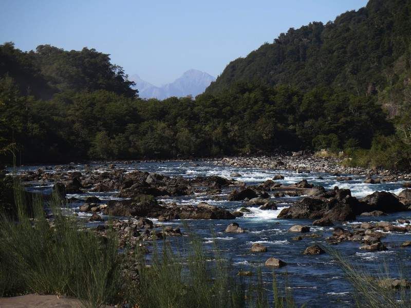 Nous partons ensuite vers le centre ville et nous constatons que pour cette heure bien avancée il n'y a pas grand monde dans les rues et les magasins sont fermés. La tension monte car nous sommes en plein W-E de Pâques et on se pose des questions. Effectivement quand nous arrivons nous ne pouvons que constater que c'est fermé et maintenant ce magasin n'ouvrira pas avant lundi voir mardi car c'est lundi de Pâques. Nous voici bloqués pour trois ou quatre jours ici, je suis en colère mais cela ne changera rien, ils auraient au moins pu nous prévenir. Nous retrouvons nos amis au bord du lac pour déjeuner et aviser sur la suite du parcours compte tenu que nous devons revenir ici puis nous partons vers le Rio Petrohue dans le "Parque Vicente P Rosales" et ensuite vers Ralun qui se situe en bord de l'océan. Nous y trouvons un tout petit camping pour la nuit et je peux partir pêcher car il est en bordure du rio qui se jette dans l'océan. Soirée tranquille, la nuit devrait être bonne.