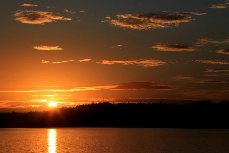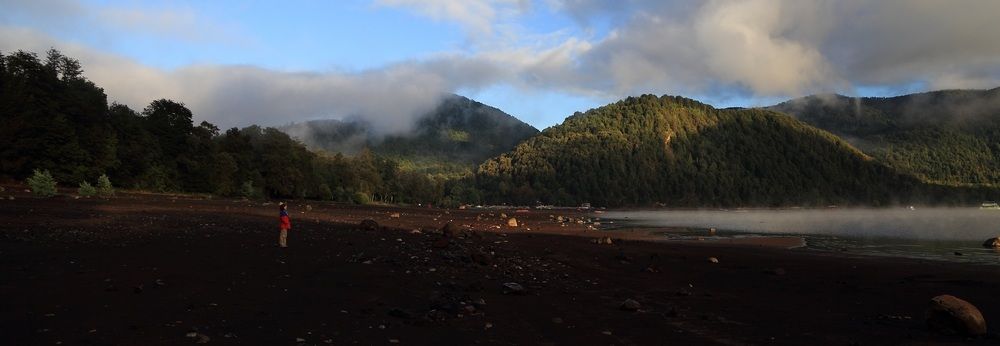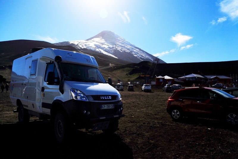 Vers 14h00 nous commençons la descente qui visiblement pose problème à certains véhicules, pour notre part nous descendons en 4eme et 5eme courtes et tout se passe bien. Nous partons en direction de Puerto Octay pour trouver un bivouac pour la nuit mais pas jusqu'au village où nous nous étions fait agresser il y a cinq ans. Finalement nous trouvons un endroit qui nous permet d'être au bord du lac et de profiter du soleil jusqu'en soirée et nous prenons l'apéritif dehors en admirant le coucher de soleil. Les quelques chiliens qui viennent se baigner repartent avant la tombée de la nuit ce qui fait que nous sommes seuls maintenant et au calme, demain il est possible que nous restions ici si le temps le permet.