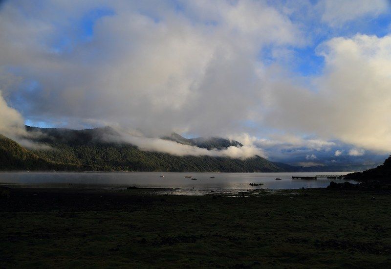 Il pleut depuis 3h00 du matin, pas facile de dormir avec le bruit de la pluie sur la cellule et les boules Quiés ne sont pas à leur place, donc impossible de se rendormir. Nous quittons notre bivouac et refaisons la piste en sens inverse pour rejoindre Valdivia puis nous filons vers Villarica et Pucon. Il pleut toujours et la route est en gros travaux avec de nombreux arrêts très longs. A Villarica nous trouvons à faire le plein d'eau dans une station essence mais avec beaucoup de mal, nous avons l'impression de demander la lune et tout en proposant de payer ce qui nous semble normal. Bref nous réussissons tout de même et heureusement car nous étions en manque, nous voici tranquilles pour quelques jours. Malgré le temps nous décidons d'aller vers le "Parque Huerguehue" et nous faisons une halte au "Lago Caburgua" pour la nuit. Le site doit être très agréable sous le soleil ce qui n'est pas le cas pour nous ce jour alors attendons demain pour voir. Nous sommes aux environs de 700km de Santiago que nous pensons atteindre dans deux jours si tout va bien, toujours vers le nord en espérant que nous y trouverons meilleur temps qu'ici.