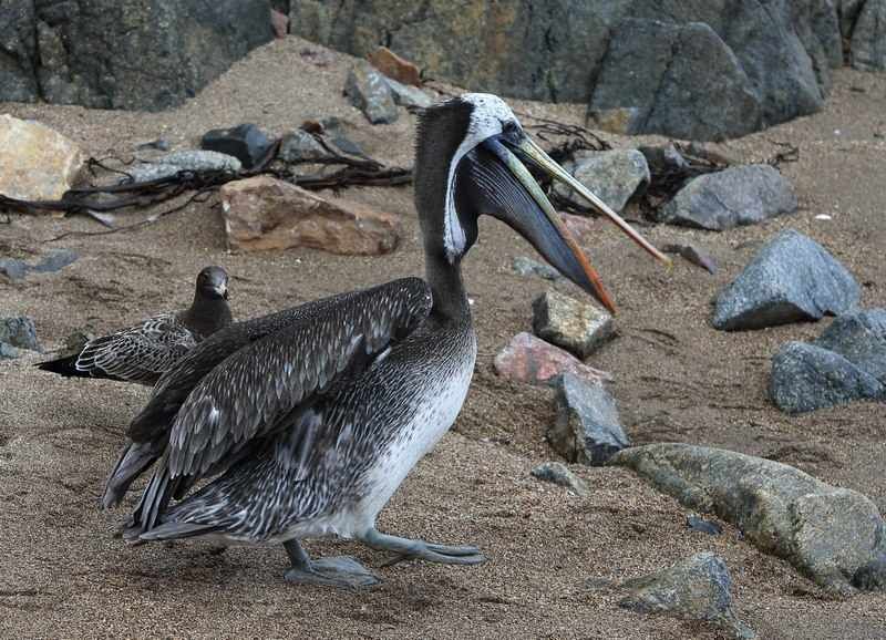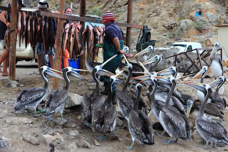 Réveil tardif pour un départ vers le parc à 10h00, nous entrons sans payer car en ce moment c'est visite libre en dehors des vacances de la région. Nous faisons quelques stops photos mais pas grand chose niveau faune à se mettre dans le boîtier. Nous continuons notre route et finissons par arriver à la "Caleta Pan de Azucar" où il y a quelques maisons et trois restaurants juste sur la plage et le tout petit port. Nous n'y sommes pas seuls et avons la chance de voir arriver des pêcheurs dans deux barques et qui vont sortir leurs prises du jour. Et là tout d'un coup des dizaines de pélicans arrivent et vont attendre que les poissons soient préparés pour recevoir les restes, c'est la fête pour eux et pour nous. Il y a également des mouettes gaviotas, des vautours et d'autres oiseaux non identifiés. Pour nous c'est un superbe spectacle que nous allons savourer depuis la terrasse d'un restaurant que nous choisissons pour sa situation devant la plage. Nous y dégustons des dorades avec ce spectacle devant nous car d'autres barques sont arrivées depuis, c'est génial. Nous décidons de rester là pour la nuit car nous sommes au calme et le guada-parque qui vient nous saluer nous dit que nous pouvons rester ici sans souci, c'est parfait.