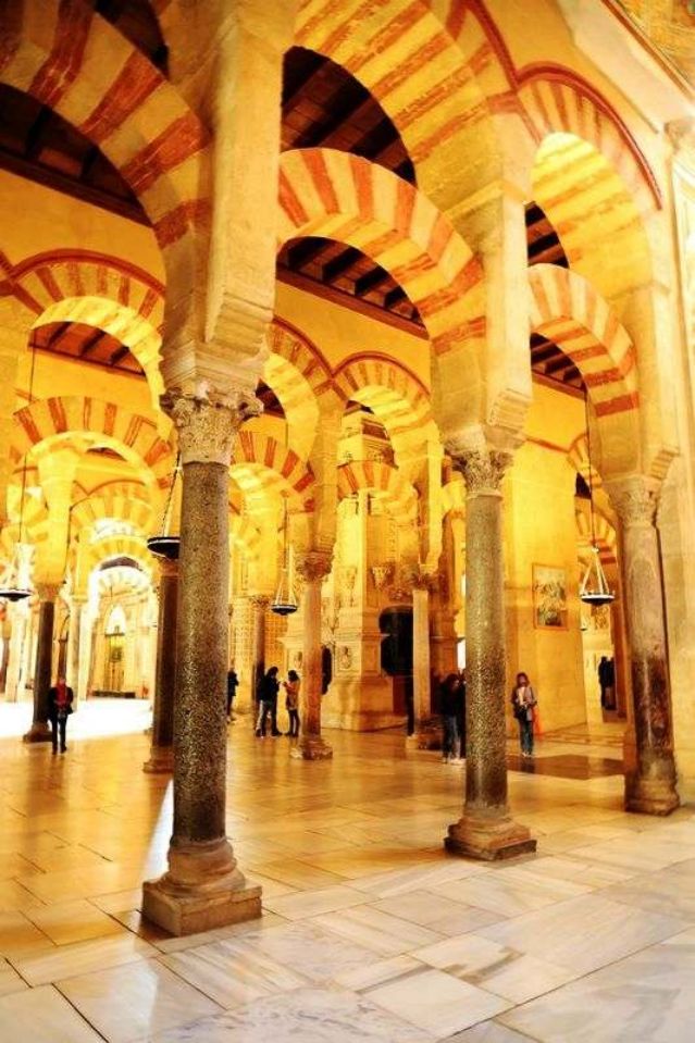 Nous ne sommes qu'à un kilomètre des monuments à voir, il fait frais cela va nous réchauffer de marcher un peu. Nous sommes déçus quand nous arrivons devant l'Alcazar qui est fermé le lundi, c'est bien notre veine ! Nous commençons à nous poser des questions pour le reste. Bon nous allons sur le pont romain (Puente Romano) et le traversons jusqu'au bout et revenons sur nos pas. Beaucoup d'oiseaux en bas, des cormorans, canards col-vert, hérons mais trop loin pour mon petit objectif. Il y a déjà beaucoup de monde partout, nous nous dirigeons maintenant vers ce qui sera le clou de notre matinée, la cathédrale (Mezquita-Cathedral). L'entrée se fait sur un grand jardin et une très grande tour, nous prenons nos billets et accédons rapidement à la cathédrale et là, boum, un gros coup sur la tête, c'est tout simplement extraordinaire à l'intérieur, un mélange de construction islamique et catholique où les deux se marient parfaitement. C'est majestueux et je suis vraiment sous le charme de ces artisans des deux bords qui ont fait un travail remarquable. Nous passerons une bonne heure à cette visite et sommes désolés de devoir quitter cet endroit car il faut avancer.
