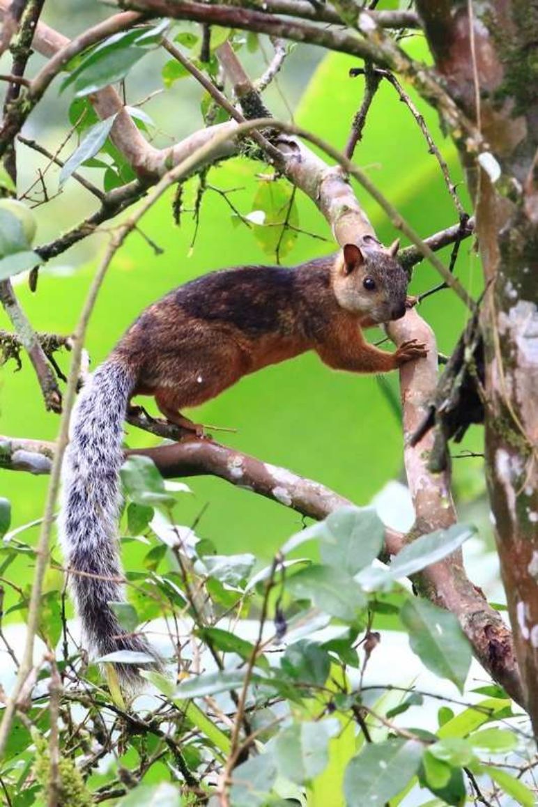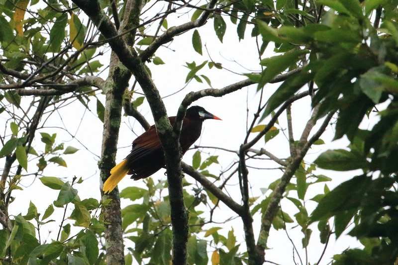 La balade se fait pour nous sans guide, nous suivons le sentier qui se fait dans un seul sens et donc nous ne croisons personne, vraiment parfait. Le sentier est complètement aménagé, nombreux ponts suspendus, nous nous promenons en hauteur parmi les arbres et la végétation luxuriante ainsi qu'une très belle cascade. Pas beaucoup d'oiseaux ici c'est trop touffu pour les voir, nous apercevons tout de même un motmot que je réussi à prendre en photo.