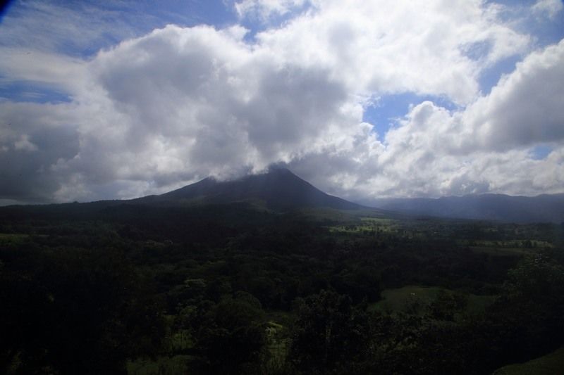 Levés dans le brouillard, petit déjeuner extra qui fait un bien fou et nous voici de nouveau en route pour une nouvelle destination. Beaucoup de regrets de quitter la Finca Amistad, maintenant en route pour ce qui sera notre dernière étape avant le retour à Alejuela pendant deux jours avant de reprendre l'avion. Mais nous n'en sommes pas encore là et il faut profiter des trois nuits à La Fortuna dans un lodge au nom de Rancho Cerro Azul. Notre cabana est située dans un très beau parc avec quelques oiseaux et des singes hurleurs que nous verrons faire leurs emplettes depuis le jaccuzzi qui est à notre disposition derrière la cabana et le seul qui équipe les sept habitations. Nous sommes surclassés par Booking et nous apprécions de faire trempette car la chaleur humide est bien présente ici.