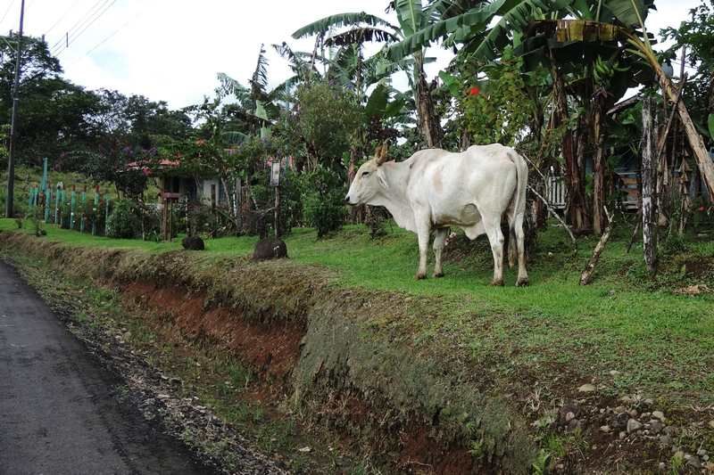 Très bonne nuit à la Finca et au réveil nous entendons les oiseaux qui nous font un très bon concert. Nous allons prendre notre petit déjeuner et comme la veille au soir nous serons surpris par la qualité et la quantité des produits qui nous sont proposés. Je n'aime pas trop le café mais ici c'est un véritable plaisir tellement il est bon. Bon ce n'est pas tout, maintenant il nous faut aller voir ce Rio Celeste, pour ce faire il va nous falloir reprendre la piste empruntée hier sauf qu'il va falloir la remonter. Dès la sortie de la Finca j'enclenche le 4x4 et tout va bien se passer malgré la boue ici et là.
