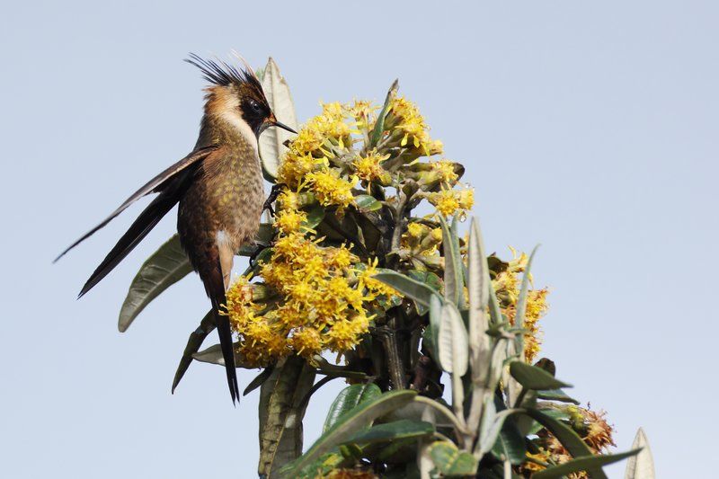 En route pour "Les thermales del Ruiz" qui se situe à 3800m au pied du "Parc naturel national Nevado" . Nous arrivons pour prendre le petit déjeuner et filons vers l'entrée du parc qui est à 4138 mètres d'altitude. Cela va sans dire que nous ne nous sentons pas très bien, le mal de tête ne nous quitte pas. Nous aurons la chance d'y voir le colibri endémique de la Colombie que nous ne trouverons qu'ici, le Buffy Helmetcrest. Retour à l'hôtel en fin de matinée pour y déjeuner et profiter de notre après-midi à faire des prises dans le magnifique parc de l'Hôtel. La soirée nous verra prendre notre dîner et aller nous coucher assez tôt car les départs du matin vers les 4h30/5h00 nous fatiguent vite.