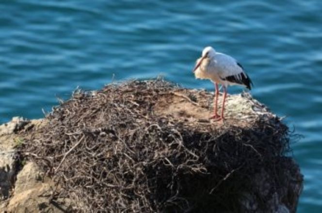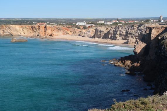 Ce matin nous continuons la route vers le sud et nous commençons par faire un stop pour apercevoir des cigognes dans leurs nids et en bord de mer au Cabo Sardao. Nous en verrons une dans son nid à croire qu'elle est là pour la photo ! Nous reprenons la route toujours plus au sud et faisons un nouveau stop sur une plage où il y a des surfeurs, la Pria da Amado. Nous y déjeunons car il est 13h30, le temps passe vite et nous filons vers Sagres pour faire les courses et aller au camping car il faut laver le linge. Beaucoup d'Allemands ici, nous ne risquons pas de dire des bêtises avec eux !