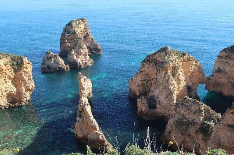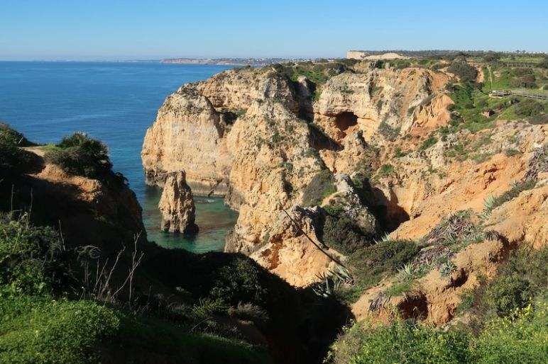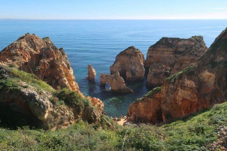 Nous partons en direction de l'est sur des petites routes pas toujours évidentes mais arrivons finalement au Ponta de Piedade qui va s'avérer particulièrement joli, nous aimons beaucoup ces paysages de rochers qui plongent dans l'eau. Nous allons marcher plus d'une heure trente sur le haut des falaises et rentrerons pour le déjeuner. Il fait faim car il est 13h30 et 14h30 en France.