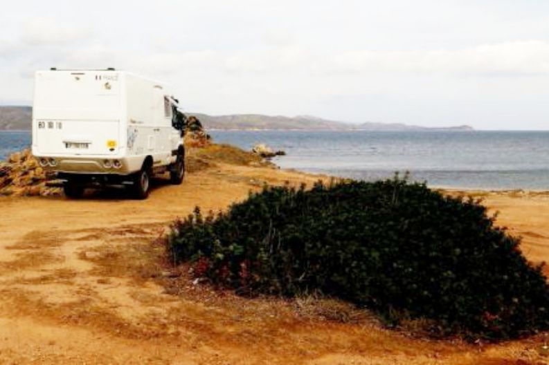 Ce coin est vraiment très beau et nous imaginons la foule qui doit se presser ici en été, comme nous sommes bien en ce moment. Nous repartons, traversons Sartène et nous plongeons sur Propriano où nous nous rendons directement au port pour nous enregistrer. Nous devrons revenir demain matin au bureau d'enregistrement vers 6h30, le départ étant prévu à 7h30. Nous allons faire quelques courses pour les jours à venir et faire une beauté à Hugo car la piste de Rocapina a laissé de la boue partout. Il est impossible de dormir au port ou sur les parkings qui l'entourent, nous sommes obligés d'aller dans un camping, le seul du coin et les prix sont bien plus élevés qu'ailleurs, bref nous n'avons qu'à rester chez nous! Demain cela sera la Sardaigne où nous espérons un peu plus de liberté pour les bivouacs, alors à demain pour la suite vers l'Italie.