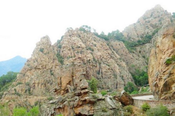 Il a plu toute la nuit et c'est donc sous la pluie que nous allons passer cette journée qui est placée en alerte orange sur la Corse. C'est bien notre chance alors qu'il fait très beau chez nous, il fera beau plus tard n'en doutons pas. Nous plions donc sous la pluie et quittons Porto vers 8h30 en direction de Propriano en passant de nouveau par les "Calanche de Piana" toujours aussi belles même sans lumière.