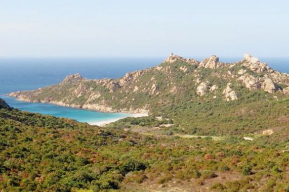 Départ du Golfe de Santa Manza vers 10h00, direction Propriano à l'ouest en repassant par Bonifacio. Nous avions repéré un golfe en venant la semaine passée et nous allons essayer de le rejoindre. Il s'agit d'aller à la plage de Rocapina en prenant une piste qui est très dégradée après les grosses averses qui ont tout inondé. Mais il en faut plus pour décourager Hugo et nous y arrivons vers 11h30, balade sur la plage, petit plongeon car l'eau n'est pas très chaude puis nous déjeunons sur place sous un chaud soleil. Nous retournons faire un grand tour après le repas, pas grand monde si ce n'est un "cul nu" qui s'exhibe sur la plage.