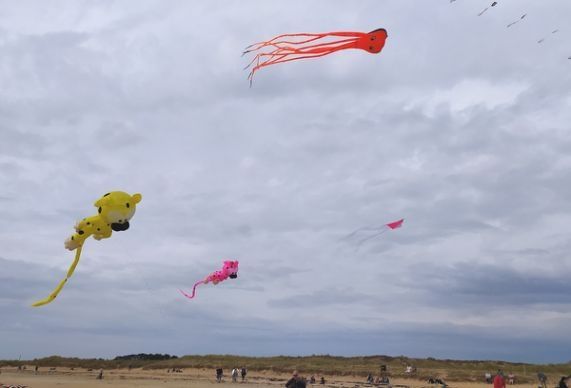 Nous quittons le parking de Rambouillet à huit heures et souhaitons une bonne expo à nos amis avant de partir. Pour nous direction la Bretagne qui va clore notre petit tour de France mais nous allons y rester plusieurs jours. La route est longue avec des centaines de ronds-points et des vitesses qui sont toujours en train de changer. Ce n'est plus possible de rouler chez nous et je vais même être flashé alors que je suis à la bonne vitesse 99km/h pour 100 sur une route limité à 110km/h, mais moi je suis poids lourd donc limité à 100km/h. Nous arriverons vers 16h00 et trouvons un emplacement sur une aire de repos réservée aux camping-car non loin de Carnac. Nous partons faire une balade sur la plage où il y a des gros cerfs-volants et profitons de quelques rayons de soleil mais le ciel devient vite sombre. Nous aurons un gros orage pour terminer la journée avant de dîner et d'aller au lit, nous en avons besoin.