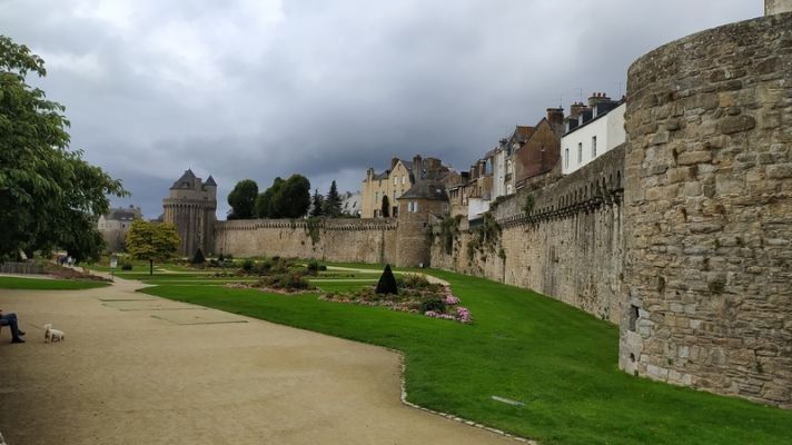 Le temps semble maussade aussi nous emportons nos "coupe-vent" qui vont s'avérer bien utile toute la journée. Visiter Vannes est une bonne idée, nous y étions venus dans les années 76, donc très loin derrière nous. La vieille ville est très belle, les façades de maisons de différentes couleurs avec les poutres partout sont très agréables à regarder. Nous flânons sur les ruelles que nous découvrons au fil de la balade et finissons par les remparts avec les jardins là aussi magnifiques et très bien entretenus.
