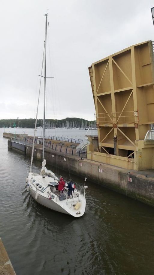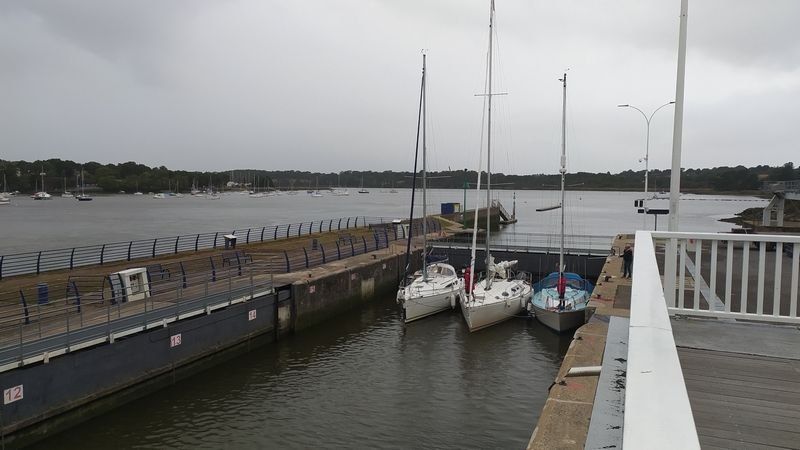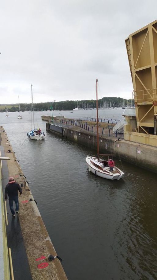 Après une nuit calme et réparatrice nos amis nous conduisent au barrage de Arzal où nous allons assister au passage en écluse de quatre voiliers qui viennent pour se ranger au port après quelques jours en mer. Très intéressant d'écouter le responsable de l'écluse diriger de mains de maître la remontée de ces bateaux.