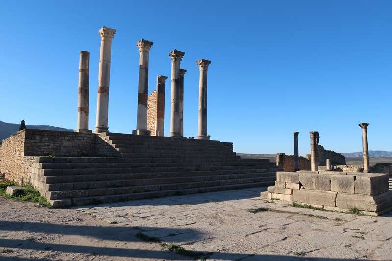 Ce matin si le soleil est là il est accompagné avec le froid, nous allons marcher à Volubilis pour nous réchauffer. Nous allons rester deux bonnes heures pour faire le tour de ces ruines romaines qui sont malgré tout très bien conservées. Il y a de magnifiques céramiques au sol, faut les chercher car certains endroits ne sont pas faciles d'accès. Ensuite nous prenons la route en direction d'Azrou où il fera encore plus froid, nous sommes plus en altitude. Stop au camping du coin au dessus d'un hôtel magnifique mais qui n'a jamais ouvert ses portes, mystère marocain.