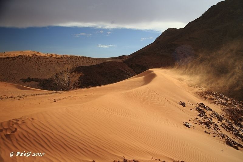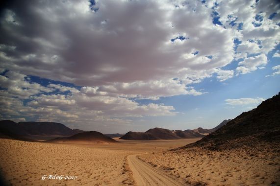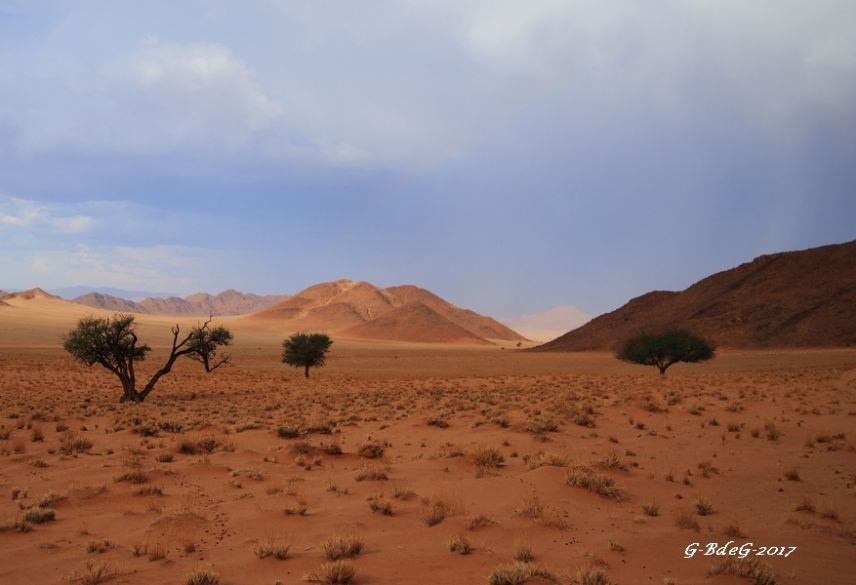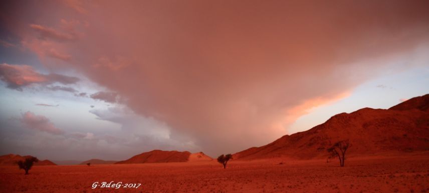 Pour aujourd'hui la matinée sera calme, piscine et encore piscine et refaire les valises car demain nous remonterons sur Windhoek après le vol en ballon. De gros orages ce jour mais au loin, pas une goutte d'eau ici et une tempête de sable qui ne durera pas longtemps mais qui va en mettre partout.