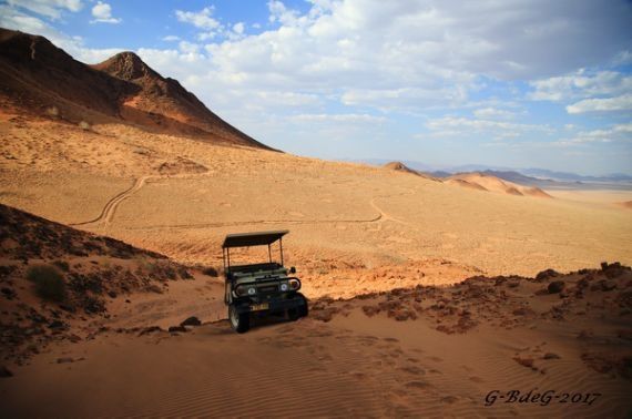 En soirée nous partons avec Eric faire un Game-drive dans ses dunes et sa montagne. Les pistes ici sont crées par lui et son fils, leur jardin fait 22000 hectares, il est sublime ! Il n'y a que eux mêmes et leurs amis qui peuvent venir ici, nous avons une chance incroyable d'admirer leur Namibie.