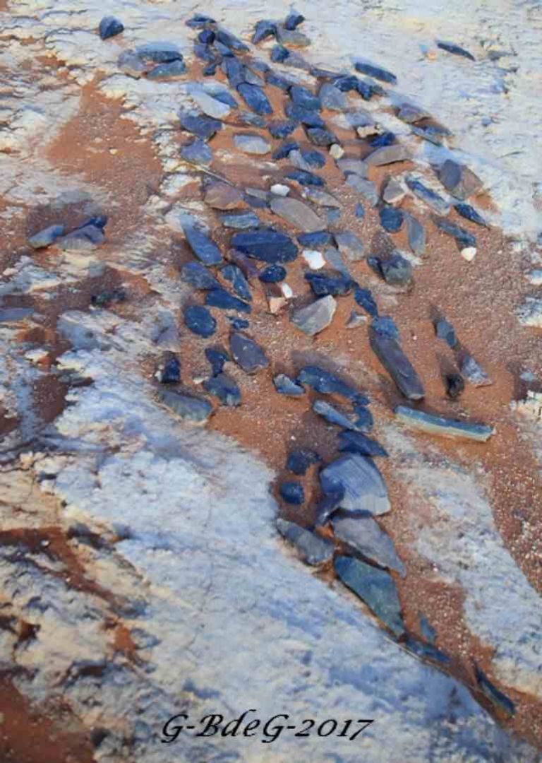 Après cette visite menée par la Manager de l'école (Gena), nous remontons passer le reste de la journée dans l'eau avant de repartir en Game-drive vers 16h30 avec Eric dans un lieu sublime où nous aurons la chance de voir des outils laissés par les Bushmans il y a 70000 ans. Découvert par nos amis il y a trois ans seulement ce site n'est pas visitable autrement qu'avec eux, seuls nous y serons comme chez nous, Eric nous faisant découvrir des trésors de 20 à 70000 ans. Les frissons nous envahissent rien que de penser que nous touchons de tels œuvres d'art.
