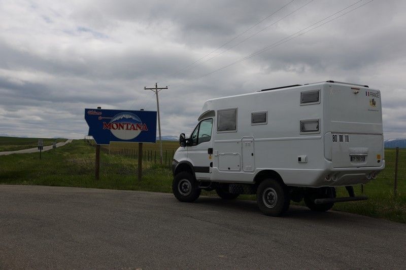 Aller, en route pour les USA et le Montana, nous avons hâte d'y être car c'est un parc où nous nous sentons super bien et où la faune est des plus belles. Nous quittons notre bivouac et prenons la direction de Lethbridge. Le temps n'est pas terrible, nous recevons quelques gouttes mais pour le moment rien de méchant, nous sommes très vite sur la ville pour notre stop.