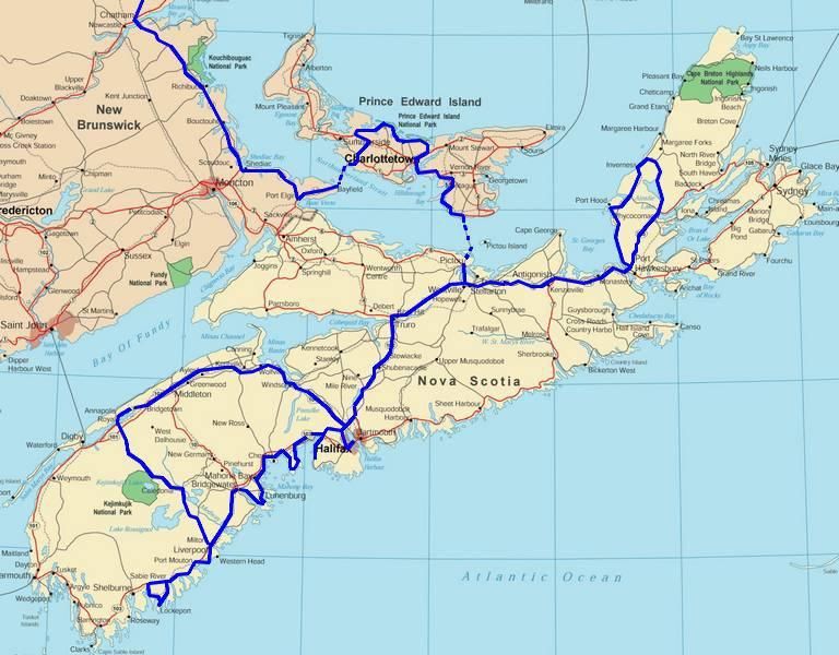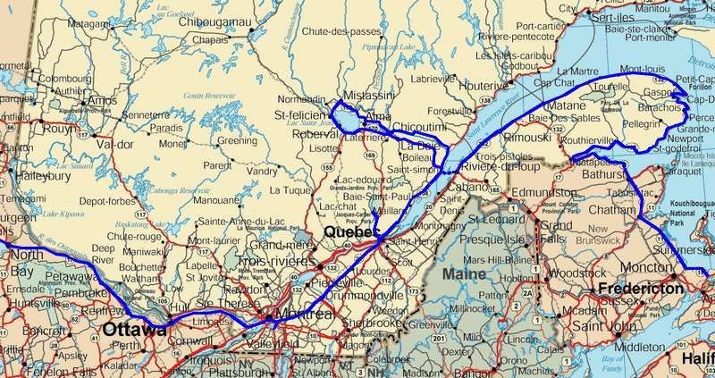 tracé de notre itinéraire depuis un mois et notre départ d'Halifax