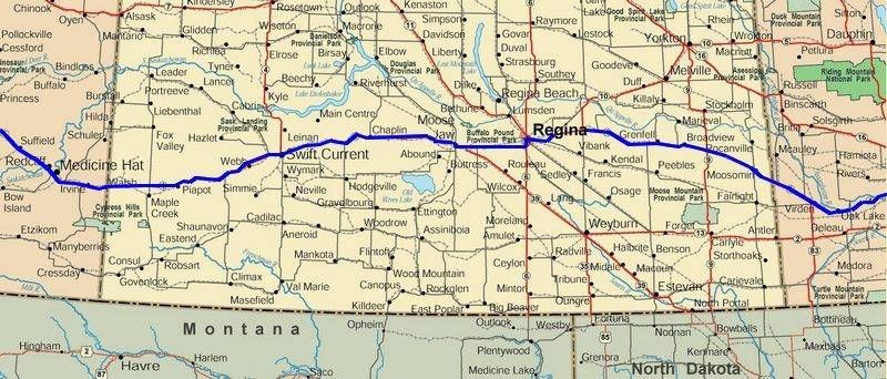 Ce matin nous reprenons la route et avec le décalage horaire nous sommes levés à 6h00, gros petit déjeuner (œufs + bacon), faut bien ça pour tenir jusque midi, j'adore!!! Nous continuons notre traversée du Saskatchewan après cette journée de repos qui a bien rechargé les batteries, il fait un temps superbe. Cette fois-ci nous sommes bien dans les plaines avec des surfaces immenses pour la culture des céréales. Les silos sont énormes et nous croisons des entreprises qui les fabriquent. Nous entrons en Alberta en début d'après midi, Calgary n'est plus très loin maintenant mais nous avons pris la décision d'aller dans le Montana donc nous descendons vers Lethbridge que nous atteindrons demain matin. Nous sommes à 200km de la frontière avec les USA et le Glacier National Park est 25km après la frontière, ce détour n'est pas énorme quand on vient de faire 4000km de traversée!