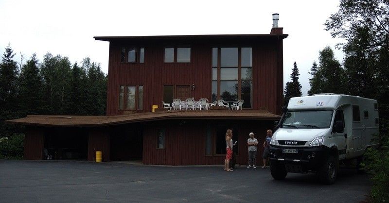 Nous avons passé une nuit épouvantable à nous bagarrer avec les moustiques, mais par où entrent-elles ces satanées bestioles? Ce n'est qu'en me levant ce matin que je vais comprendre, hier je suis monté sur le toit pour nettoyer les panneaux solaires et j'ai appuyé l'échelle sur la garniture du lanterneau. Avec les secousses sur la route, cette garniture est descendue offrant une ouverture pour les stics, la prochaine fois je ferai attention! On apprend de ces erreurs et le dicton est toujours vrai. Nous prenons la route après un bon petit déjeuner aux pancakes réalisés par Françoise et roulons sur Anchorage que nous atteindrons en fin de matinée. Nous cherchons de quoi faire nos courses et trouvons un Fred Meyer, pour ne pas faire de pub avec tout ce qu'il nous faut pour les deux jours à venir. Je vais également faire mes achats pour aller à la pêche, les saumons arrivent en ce moment et j'attends d'avoir vu notre ami Lionel, guide pêche et organisateur de séjour ours en Alaska (Grand Frisson) avec qui nous sommes déjà partis pour des séjours de photographies naturalistes en immersion totale, que du bonheur.