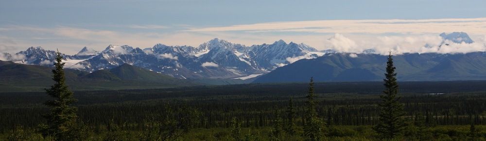 L'Alaska Range depuis la Denali Hwy à hauteur de la Susitna Creek