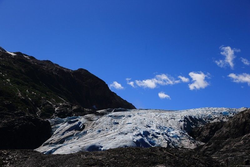 Pour le moment nous avons un temps très chaud comparé à celui d'hier, nous allons en ville acheter quelques babioles et rentrons chez Hugo pour le repas, dans l'après-midi nous partirons sur Exit Glacier faire une balade à pied ce qui nous fera du bien. Nous rentrons en fin d'après-midi, il y a un monde fou partout, heureusement que nous pouvons réserver nos places et partir après, sinon!!!!