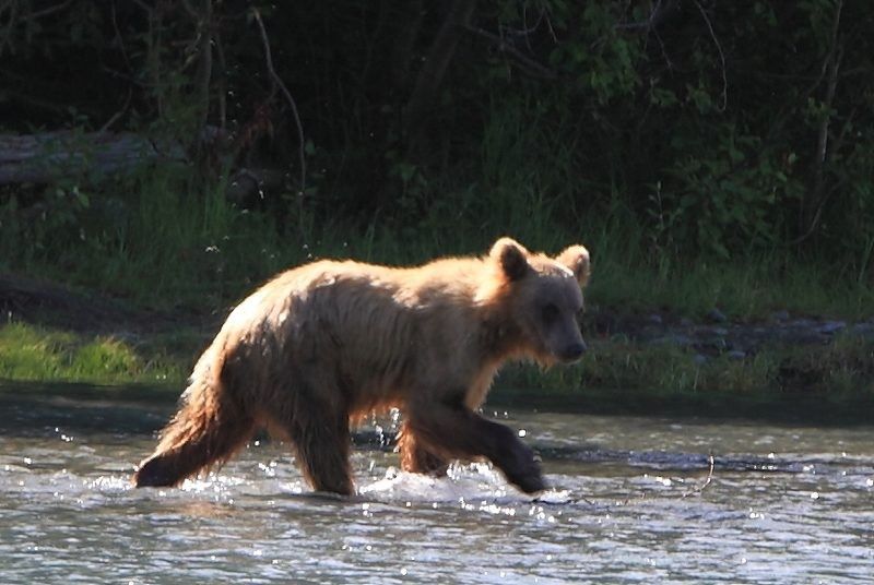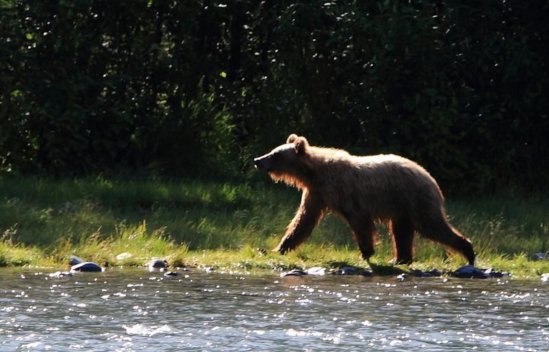 Nous reprenons la route de Soldotna qui est surchargée cette fois-ci mais dans l'autre sens, les américains rentrent chez eux nous allons pouvoir profiter des rivières, enfin espérons le. Mais je crois que je me suis réjouis trop vite, en passant sur les bords de la Kenai River, nous pouvons constater qu'il y a toujours autant de monde et les aménagements de Soldotna sont aussi chargés que la dernière fois. En voulant me rendre sur un lieu de pêche je tombe sur un grizzli qui lui est chez lui aussi je lui laisse la place. Nous décidons de pousser plus au nord vers le Capitaine Cook State Park où nous pourrons toujours dormir car il y a un campground qui devrait être très agréable. Malheureusement je constate qu'il est impossible d'accéder à la rivière autrement qu'avec un bateau, les pêcheurs à pied comme moi doivent trouver d'autres solutions, bon nous verrons demain!