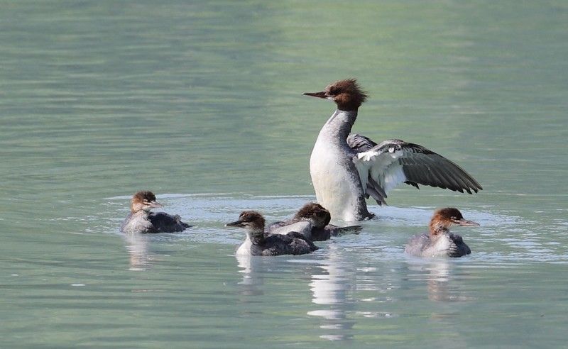 Avant de quitter ce lieu de pêche nous avons la possibilité de voir des grèbes avec leurs petits et les mouettes qui viennent leur chiper les poissons qu'elles attrapent. Une loutre d'eau douce passe également et se fait plaisir en pêchant quelques spécimens à sa taille, elle va se retirer le ventre bien garni au moment où je sors l'appareil photo, ah la "loutre" alors. Je me vengerais sur un bald eagle qui lui pique un vieux poisson aux mouettes, juste retour des choses de la nature.