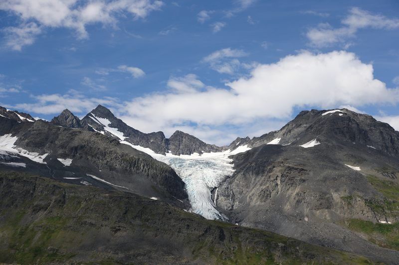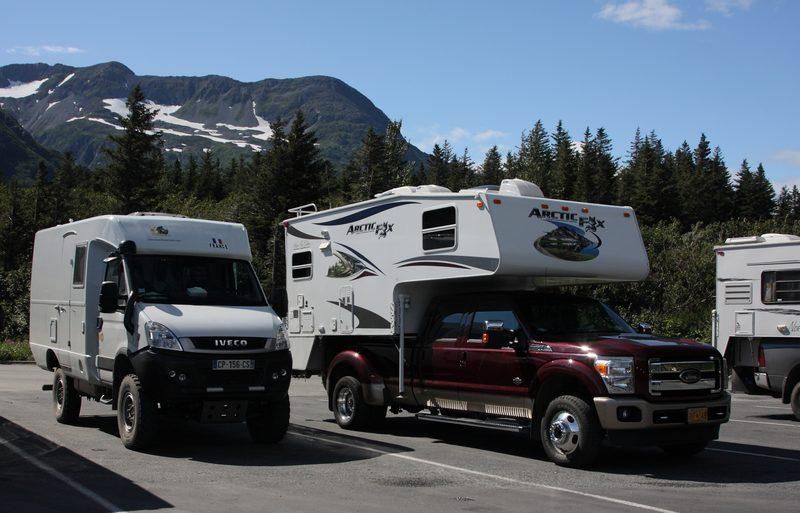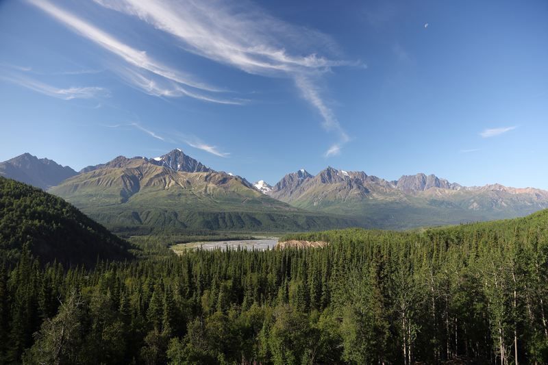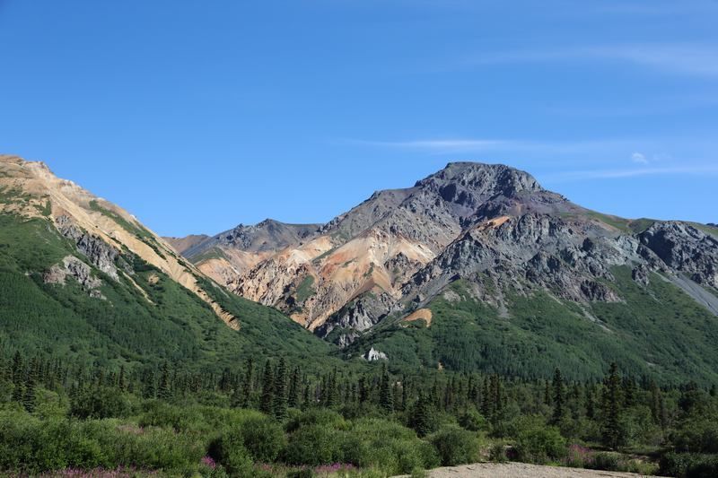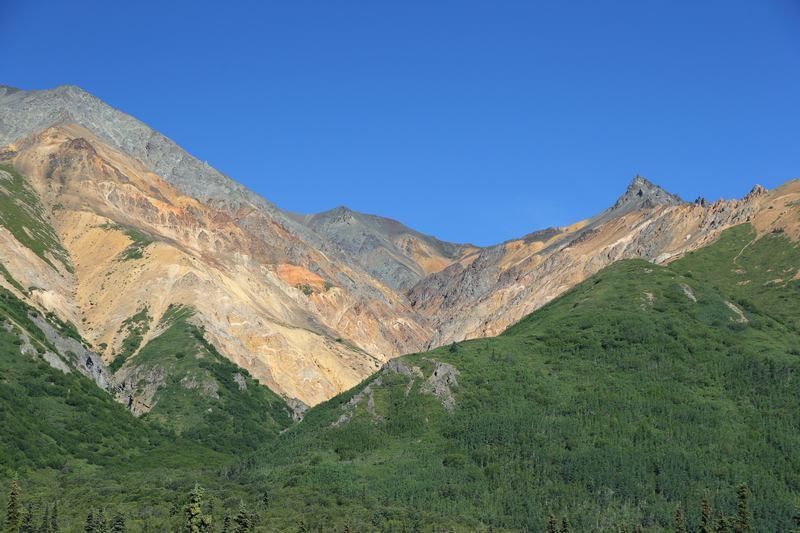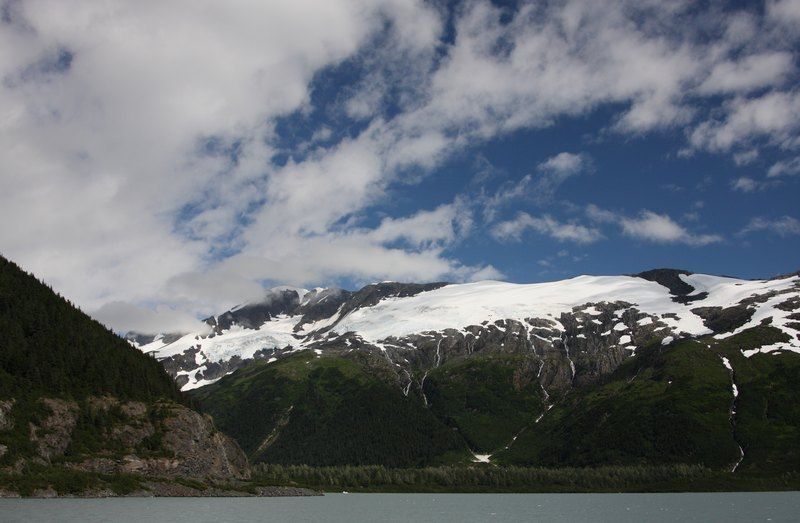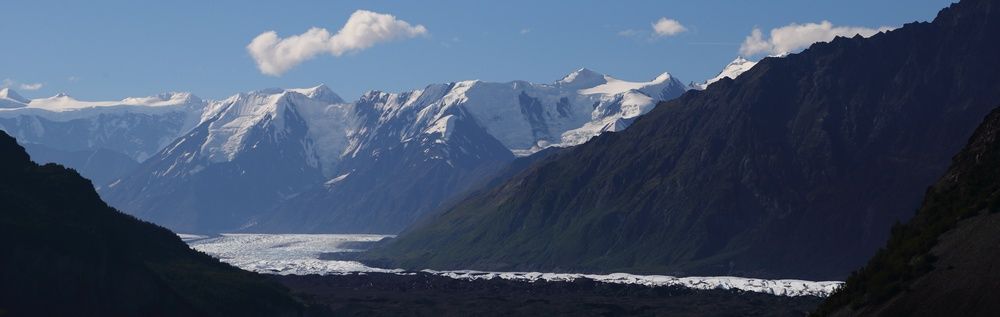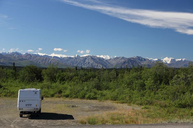 Nous quittons Matanuska River pour continuer la Glen Hwy en direction de Valdez et profitons des merveilleux spectacles que nous propose cette route. Tour à tour nous côtoyons les glaciers, les rivières et des paysages qui nous transportent en Argentine car nous y retrouvons les couleurs minérales des Andes. Bientôt nous quittons la Glen Hwy pour tirer direct au sud par la Richardson Hwy, encore une route de toute beauté. Nous ferons un arrêt déjeuner face aux sommets des Wangels Mountains, magnifiques dans leur écrin blanc. Comme nous avons tout notre temps, nous faisons un stop pour la nuit dans un State Park Campground au bord du Blueberry Lake où je vais pouvoir pêcher si les moustiques ne sont pas trop envahissants. Nous trouvons une place au bord du lac et nous comprenons vite pourquoi, le coin est saturé par les mouches et les moustiques mais à l'intérieur d'Hugo nous sommes tranquilles, il est très hermétique.
