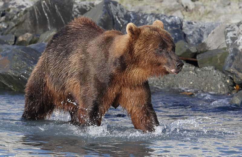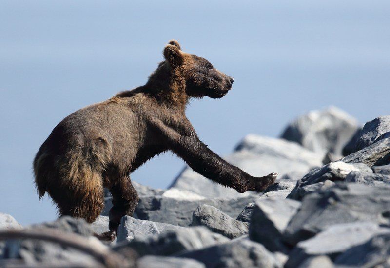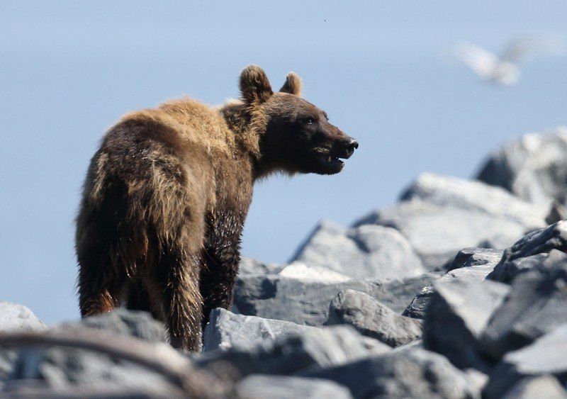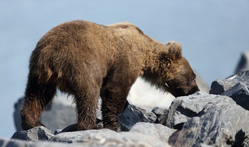 Nous nous posons au bord l'océan pour la nuit et je peux aller pêcher, quatre saumons viendront me faire un coucou, je suis super content, ils sont très gros et je les pêche avec un fil de 20/100eme alors qu'il me faudrait au minimum du 50/100eme, ça c'est du sport et je les ramène jusqu'au bord, belles bêtes qui repartirons tranquillement. Les loutres viennent à quelques mètres de moi, du vrai plaisir de les voir ainsi. Vers 19h30 les ours reviennent, nous les suivons jusqu'à l'embouchure du torrent que les saumons empruntent. Nous allons les suivre durant plus d'une heure et cette fois-ci ils sont au calme et tranquilles, la grosse foule est partie. Retour chez Hugo, dîner et dodo vers 23h30, il fait jour et nous sommes complètement déboussolés par les horaires, à demain pour une nouvelle journée.