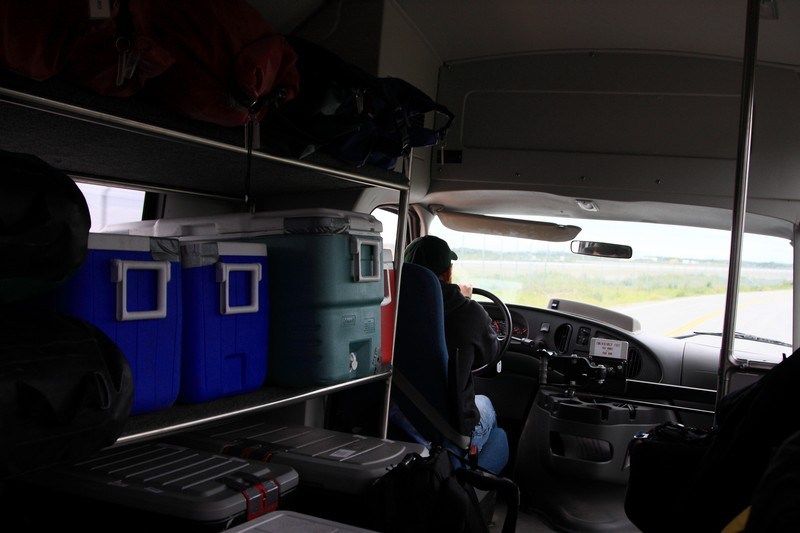 Ce matin Lionel nous réveille à 5h00, il faut tout ranger, refaire les sacs et ensuite déplier les tentes et tout le matériel qui nous a servi. Le départ est prévu vers 9h00, oui mais voilà la météo est très capricieuse ici et sur King Salmon le brouillard est trop important pour que les hydravions puissent décoller. Le téléphone satellite de Lionel permet de rester en contact avec le central de Katmai Air et nous allons donc patienter de 8h30 jusque 15h00 dans le vent et le froid avant de pouvoir enfin décoller pour King Salmon. Le vol sera difficile car le brouillard est vraiment très important et nous ne verrons rien derrière les hublots puis dès notre arrivée nous partons vers l'aéroport où nous reprendrons un vol pour Anchorage et là aussi il nous faudra patienter car le vol de 18h00 que nous devions prendre est annulé, nous ne partirons que vers 20h00. En attendant nous allons passer une très bonne soirée chez "Eddie's", une institution à King Salmon et nous y prendrons notre diner dans une super ambiance après les craintes de la journée. Le vol vers Anchorage sera sans problème et nous serons chez Lionel vers 22h30, un petit tour sur internet, discutions sur le planning du lendemain et tout le monde au lit à minuit, nous sommes tous crevés par cette longue journée.