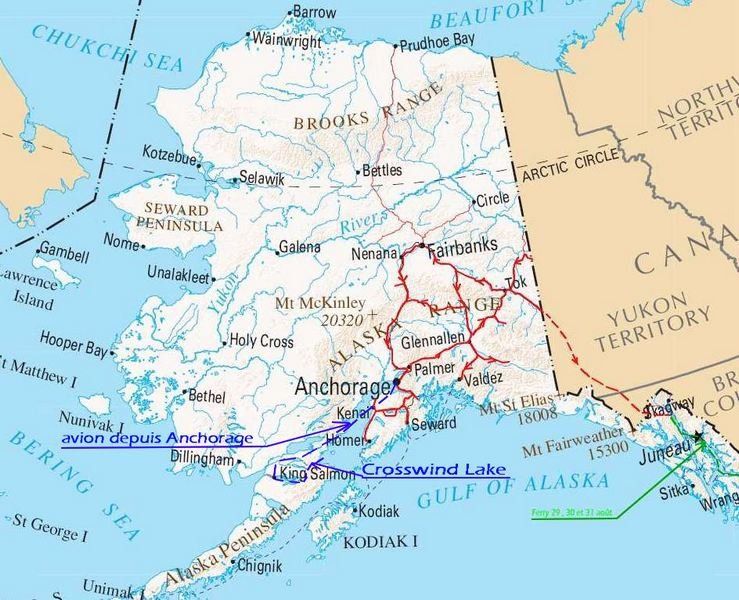 itinéraire réalisé en Alaska du 07 juillet au 29 août 2013