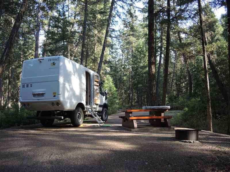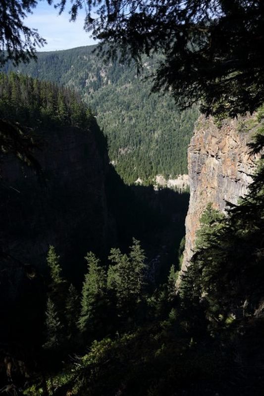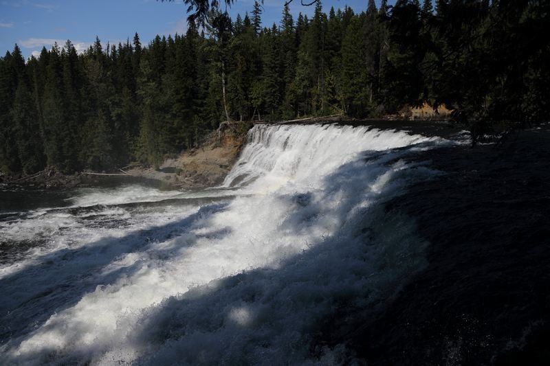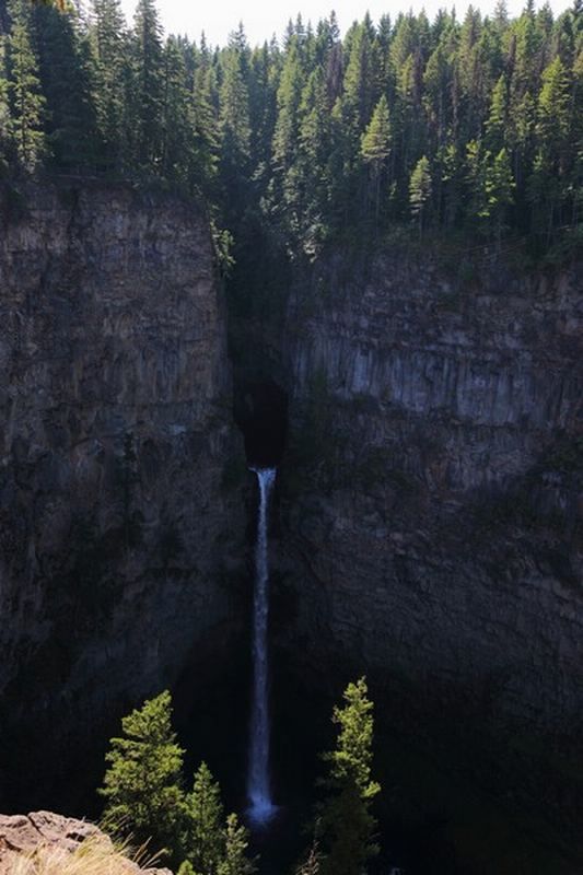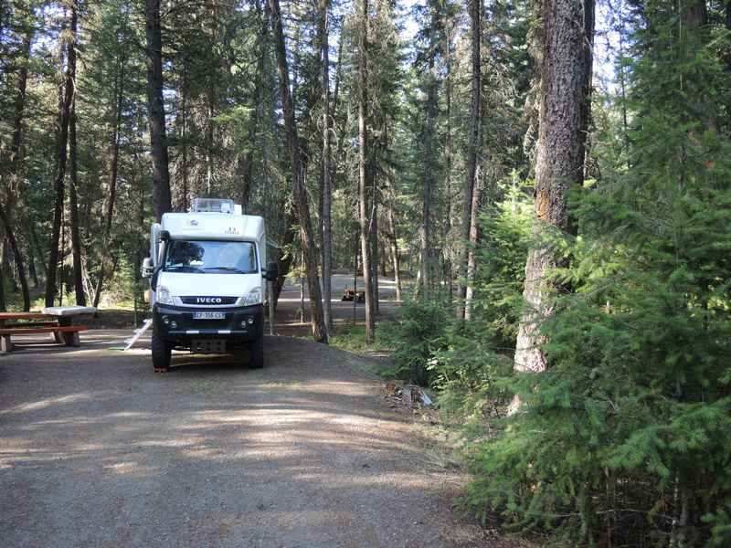 De l'orage cette nuit, pas étonnant après les 29° d'hier soir, nous avons eu chaud, tant mieux. Ce matin nous sommes dans le brouillard et nous partons vers 9h00, nous décidons de revoir une des chutes d'hier qui était face au soleil mais ce matin elle est dans les nuages, grrr. Nous faisons un stop sur une autre chute que nous n'avions pas faite hier, celle ci est dégagée et ressemble à la "Piscia di gallu" en Corse, elle sort d'un trou et se jette d'un seul saut dans le canyon. Nous continuons maintenant notre route en direction des parcs de l'ouest où nous devrions être demain en début d'après midi, les distances sont telles que nous préférons faire de petites journées avec un maximum de 400km. Nous passons Revelstoke et nous remontons la vallée vers Glaciers national Park où nous espérons pouvoir trouver un campground pour la nuit. La saison touchant à sa fin, beaucoup de parcs ferment leurs campings, cela va commencer à être galère pour nous.