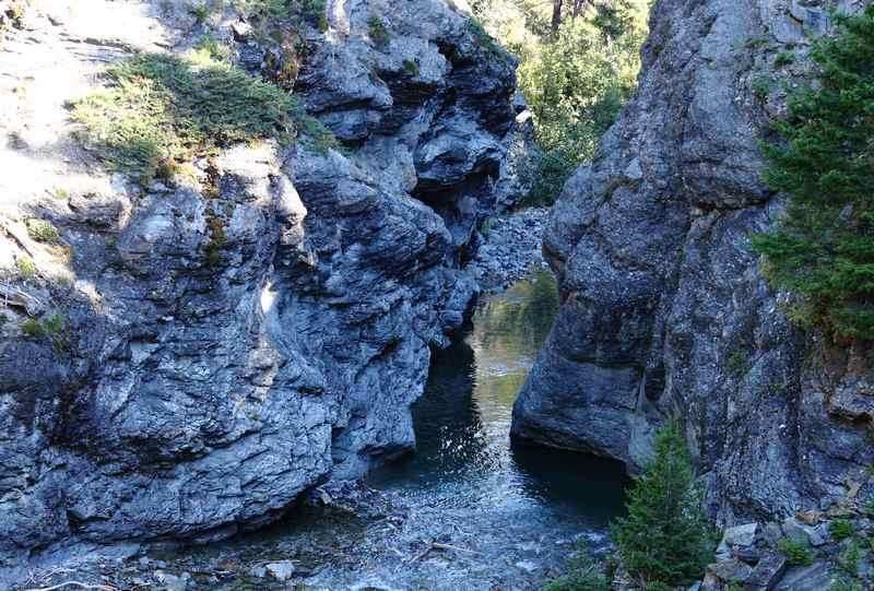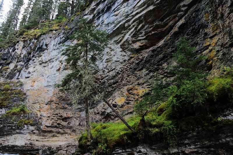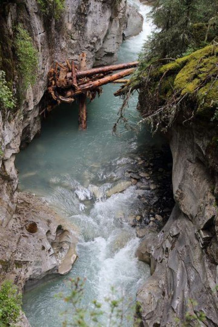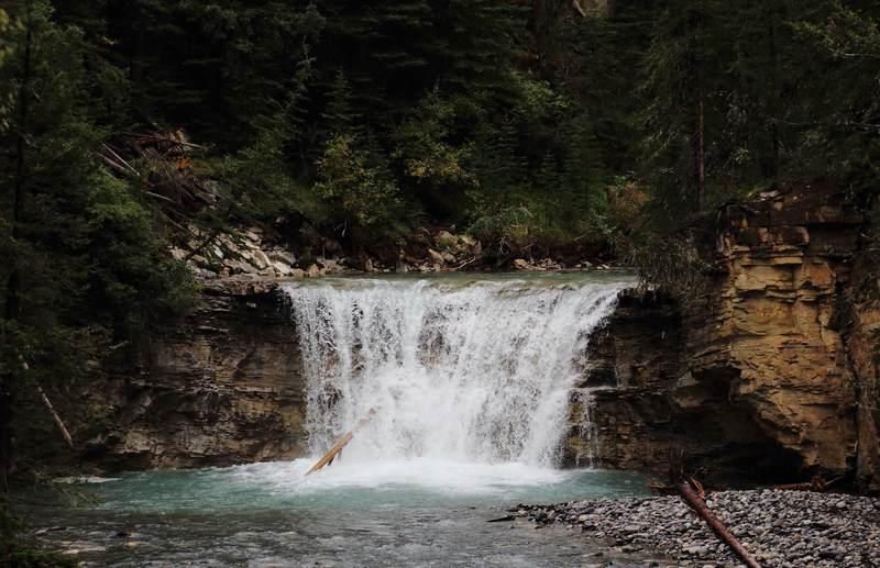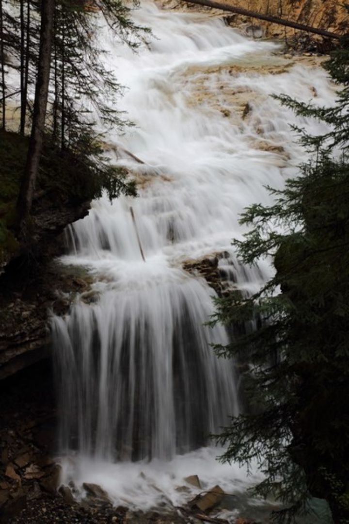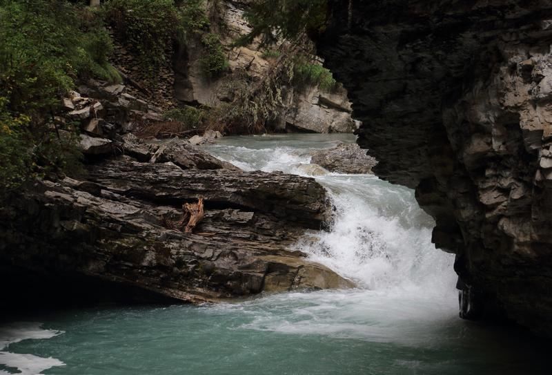 Nous passons à internet quelques moments, le temps des MAJ du site et de relever les mails. La météo devient plus belle à partir de demain, c'est confirmé par "Forcast Canada", nous ne demandons que cela mais pour le moment ce sont des hallebardes qui dégringolent. Nous partons vers midi trente et prenons la route de la "Bow Parkway", nous passons devant les "Baker Chalet" où nous avions séjourné en 94 puis nous faisons un stop au parking de Johnston Canyon. Nous déjeunons et partons après faire la balade du canyon qui ne nous lasse jamais. La foule des grands jours est là, le sentier est jonché de détritus, un million de personnes passent ici en été, nous sommes loin du sentier tranquille vingt ans en arrière. Heureusement que le canyon lui ne change pas, nous allons y faire de nombreuses photos.