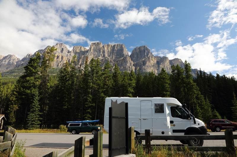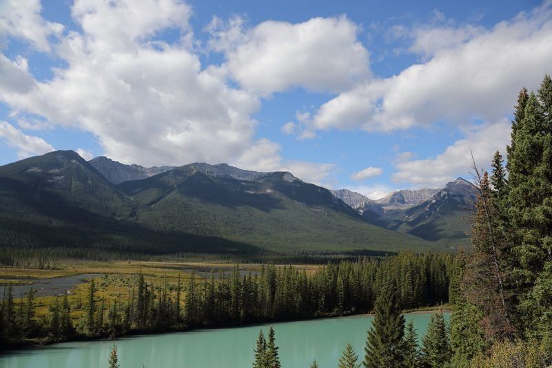 Nous passons par la Bow Parkway qui à l'avantage de longer la rivière "Bow" jusque Banff et puis d'ici les paysages sont plus jolis. Nous serons sur Banff vers midi, faisons un tour pour trouver la laundry, la Library, une boutique sport et nous nous choisissons également un restaurant où nous ferons un très bon repas pour un tarif très raisonnable compte tenu de l'endroit très sélect où nous sommes. Françoise passera deux heures à la laundry pendant que moi j'irai à la library où il y a du WiFi et de là je peux surveiller Hugo qui joue toujours les stars. Nous partirons sur les campgrounds de Tunnel Mountain et nous serons installés vers 16h00, il fait beau je vais profiter pour nettoyer les panneaux solaires, les lanterneaux et le système d'aspiration des fumées cuisine.