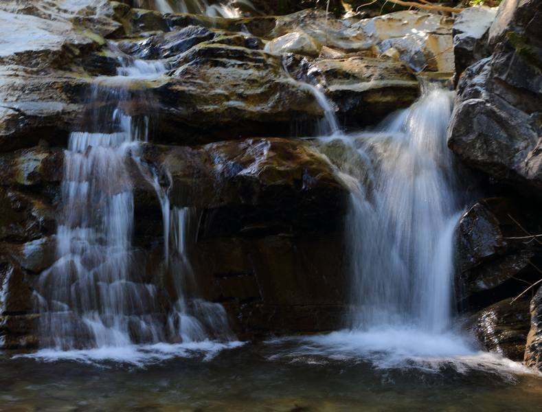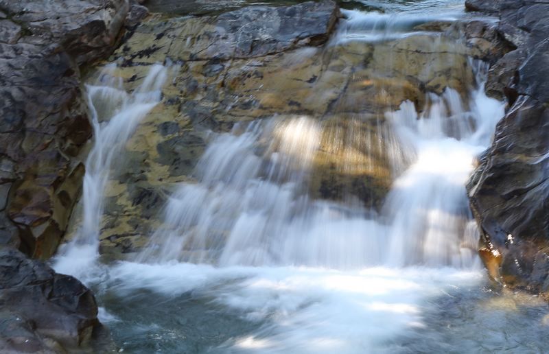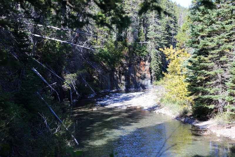 Nous allons faire deux petites promenades qui vont nous faire découvrir de belles chutes d'eau sous le soleil et un ciel d'une couleur magnifique, pas un nuage ce matin! Nous serons de retour au parking une heure trente après et décidons de rentrer au campground pour y déjeuner et de partir ensuite pour une balade de 7km qui nous conduira à une superbe cascade.