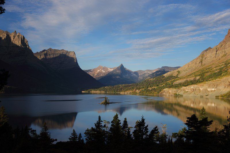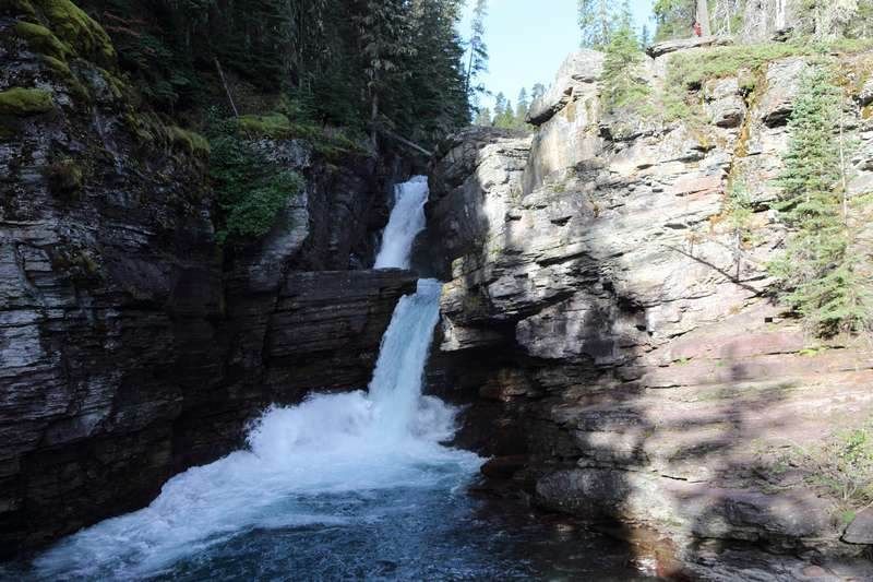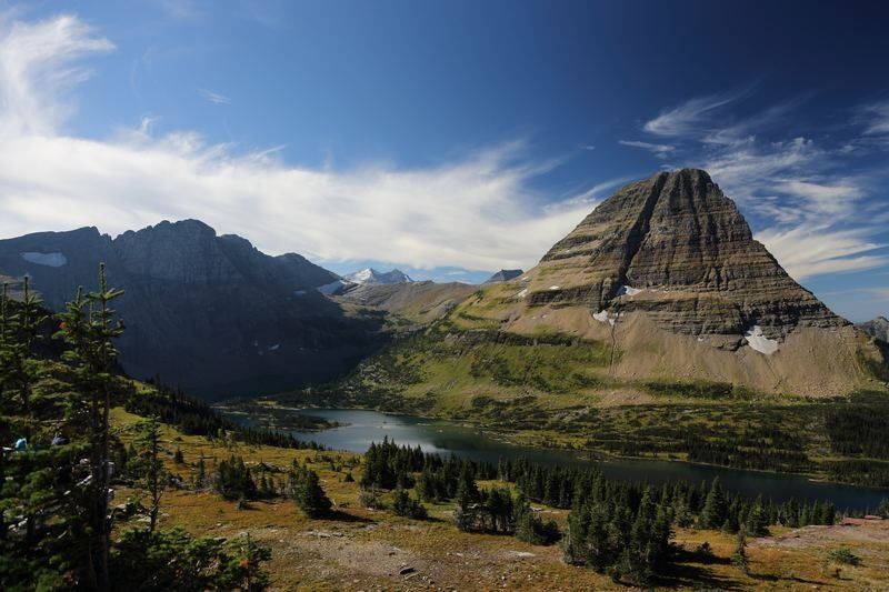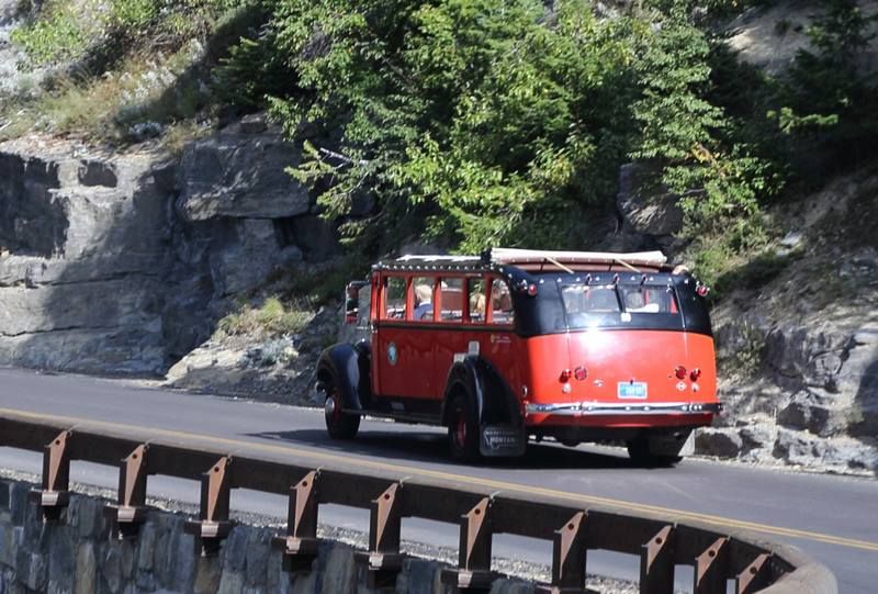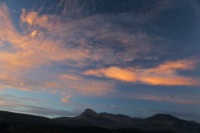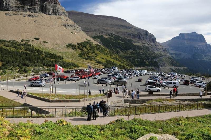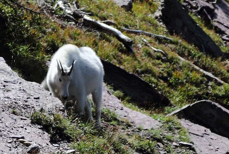 Réveil à 6h30 car si nous voulons faire toutes les balades prévues il faut commencer tôt. Le ciel est un peu couvert ce matin et les nuages sont teintés de rose, c'est beau et préfigure d'une belle journée. Nous quittons Ste Mary en prenant la mythique "Going to the sun road", la route qui va vers le soleil et faisons rapidement des stops pour quelques photos de ces fabuleux paysages, mais qui manquent de neige en ce début septembre, nous les avions vus avec beaucoup de blancheur en juin. Nous partons pour une petite balade de 3km afin de voir les chutes Ste Mary, il fait chaud et la foule est déjà largement présente en ce début de matinée. Arrivés à la Logan Pass, nous trouvons difficilement à nous garer, c'est fou à 10h00 du matin puis nous partons pour une randonnée de 8km A/R au view point du Lake Hidden où nous aurons la chance d'apercevoir des mouflons (bighorn sheep) ainsi que des chèvres de montagne (mountain goat). Nous serons de retour au parking pour 12h00, nous aurons fait vite et ne regrettons pas d'être des lève tôt quand on voit la foule qui cherche en vain une place de parking.