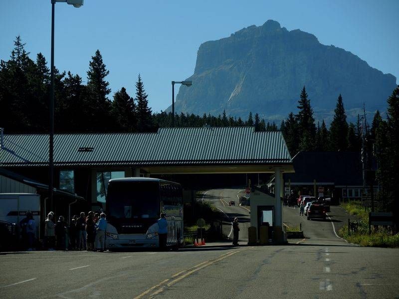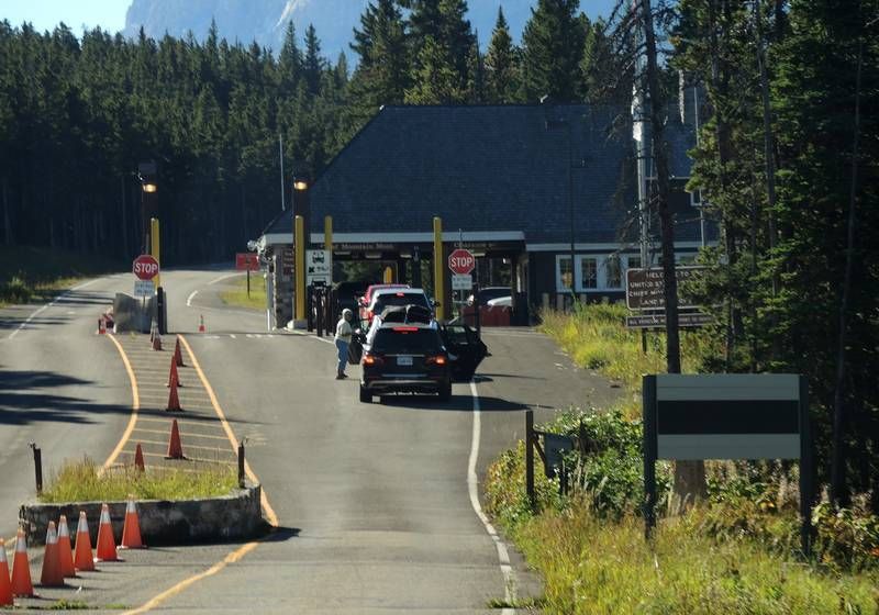 Nous sommes debout avec le soleil qui vient réchauffer doucement la cellule et nous nous préparons pour le passage de la frontière à Chief Mountain. Nous rangeons certaines choses qui ne doivent pas passer, allez savoir pourquoi, même si ce sont des produits venant des USA et importés vers le Canada. Je range comme il se doit la bouteille de Pernod car celle-ci je tiens à la conserver et nous partons essayer de trouver du WiFi au centre de Waterton. Nous arrivons à nous connecter difficilement mais le principal c'est de pouvoir lire les messages et de mettre le site à jour. Vers 9h30 nous prenons la route vers la frontière qi n'est pas très loin, environ 50km et nous y serons rapidement. Nous allons devoir faire la queue, tout du moins attendre que Mr le douanier daigne s'occuper de nous, il semble ne s'intéresser qu'aux voitures et il en arrive tout le temps. Après vingt bonnes minutes d'attente il nous fait signe d'avancer, nous pose les questions habituelles, pas d'alcool, d'aliment, d'animaux, d'arme à feu, fait le tour du véhicule et nous souhaite "bienvenue aux USA" en nous rendant nos passeports. Ouf, pas de fouille, nous avions peur car nos amis Christian et Sylvie ont eu le droit à une fouille sur une autre frontière entre la Colombie Britannique et les USA.