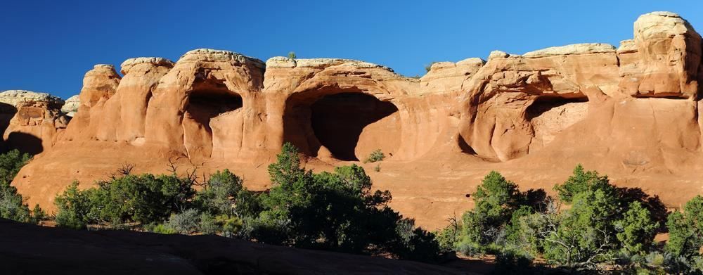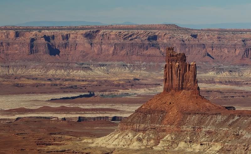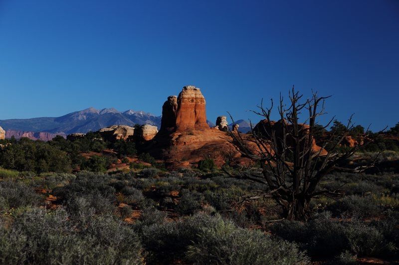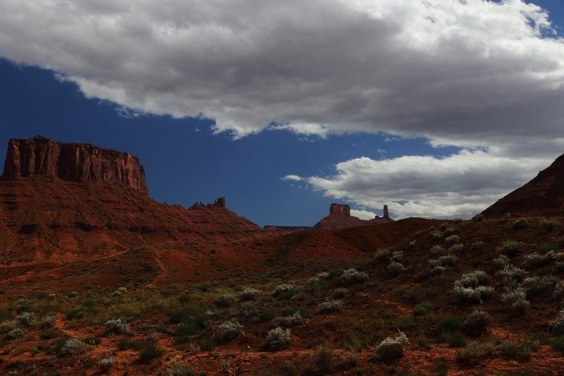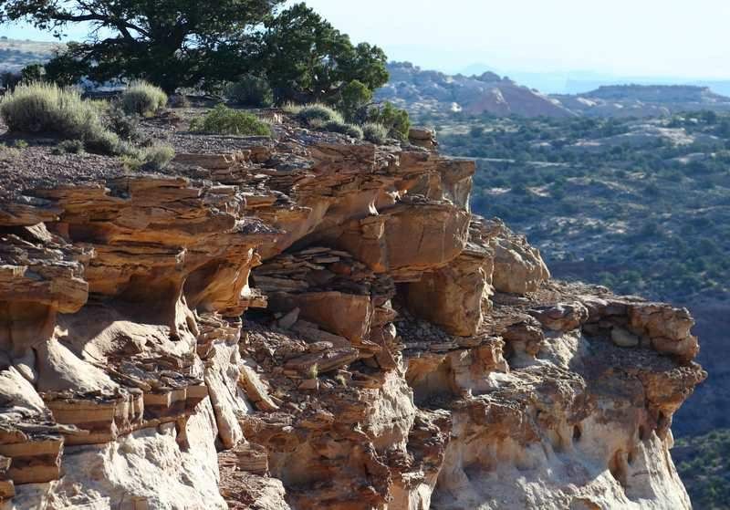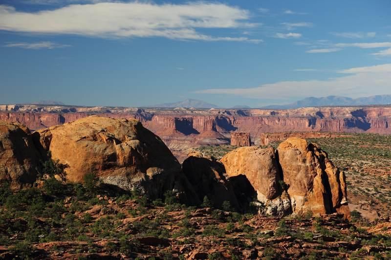 Nous prenons la longue route qui nous conduit à l'entrée du parc et filons direct au campground qui se situe à proximité d'un point de vue sur le canyon, malheureusement pas une place de libre, nous arrivons trop tard et il n'est que treize heures. Je rage et nous devons ressortir du parc pour aller sur un autre campground et là miracle nous allons trouver de la place mais elles sont tout de même rares. Nous prenons notre déjeuner, il est 14h30, et nous avons vraiment faim dommage qu'il fasse frais dehors (13°) car le temps est magnifique aussi nous déjeunons à l'intérieur de la cellule. Repos pour le restant de la journée, nous allons rester deux nuits ici et donc demain nous aurons toute la journée pour visiter canyonlands.