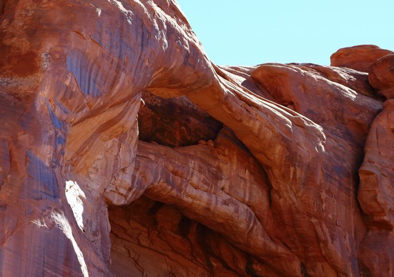 A 11h30 un ranger vient nous voir et nous explique la même chose mais cette fois-ci il répond à ma question: que se passe-t-il? Tout simplement que le gouvernement n'a plu les moyens de subventionner les "National park" donc il les ferme et comme il ne peut plus assurer les salaires des rangers, ceux-ci ne travaillent plus donc on ferme tout et les trails et bien puisqu'ils ne travaillent plus ils ne peuvent les surveiller, tout simplement. Ceci-peut durer encore pas mal de jours car les subventions ne vont pas revenir rapidement, bref nous sommes désolés car il nous restait pas mal de parcs à faire, nous allons nous rabattre sur les State Parks en attendant. En fin de journée nous partons pour une balade d'environ une heure pour aller voir une arche à proximité du campground.