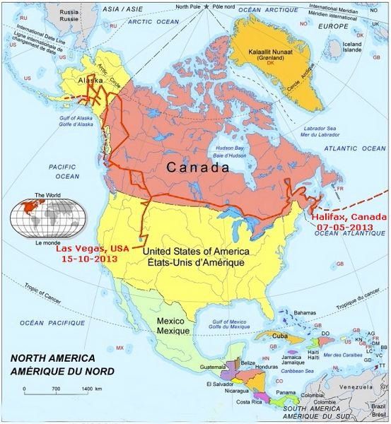 Parcours réalisé du 03 Mai au 16 Octobre 2013 au Canada, Alaska et USA Ouest