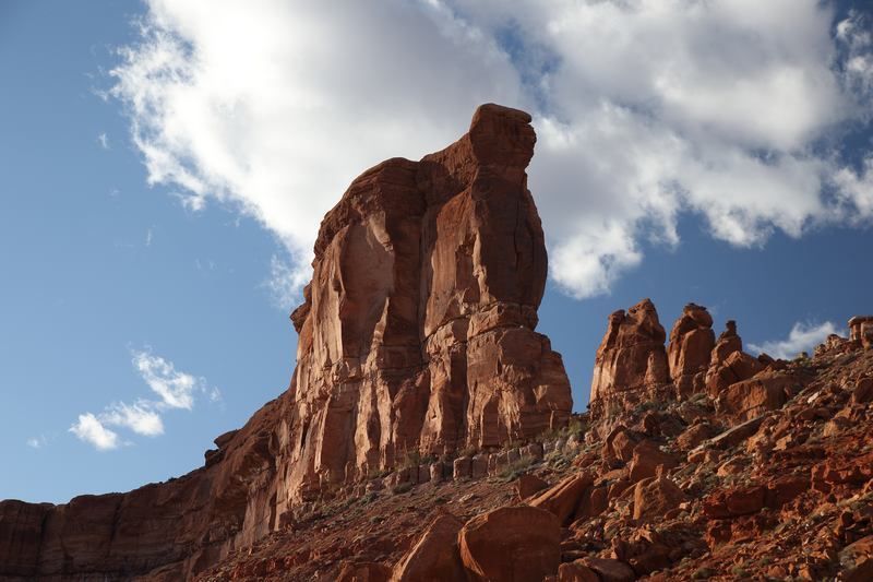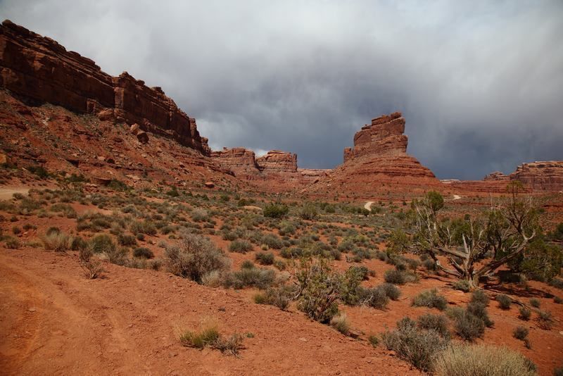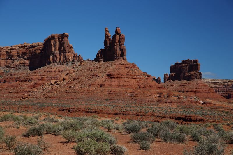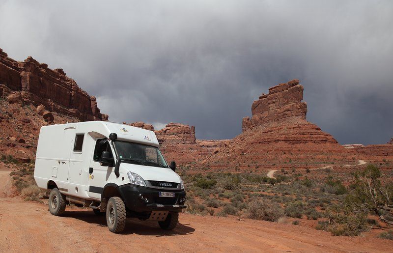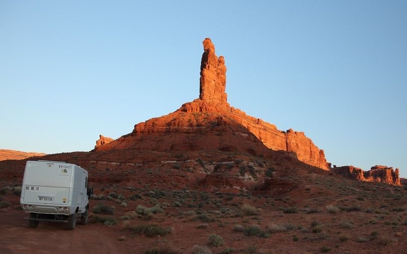 Nous quittons le bivouac pour nous rendre de nouveau dans la "Valley of the Gods" toute proche, le temps est superbe et nous devrions avoir de belles vues, certainement plus belles qu'hier sous les nuages d'orage. Le fait est que nous nous régalons et nous ne regrettons pas de la faire dans le sens opposé à celui que nous avions toujours fait en y accédant par la Hwy 163. Là nous avons pris la N261 et sommes entrés par le nord. Jusque 13h00 nous ne croiserons que deux 4x4, nous faisons un stop pour le déjeuner et allons continuer notre balade avant de revenir sur nos pas et trouver un bivouac pour la nuit. A 16h00 nous sommes installés, je charge les photos, Sylvie prépare les crêpes pour le goûter, faut bien ça pour se remettre de nos efforts!!!! Françoise préparera les sardines en boite mélangées à du "Philadelphia" sorte de fromage à tartiner du style St Moret chez nous et c'est drôlement bon, pour l'apéritif car nous sommes dimanche ce jour. Dehors il fait beau mais le vent s'est levé et nous serons bercés cette nuit au bivouac.