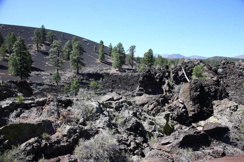 0° au réveil et 8° dans la cellule, je me lève et mets le chauffage en route, dans dix minutes il fera chaud et nous pourrons prendre le petit déjeuner. Aujourd'hui nous partons visiter la région du Sunset Crater par des petites balades dont une qui grimpe raide dès le départ, c'est un petit volcan ( le Lenox), nous atteindrons très vite le sommet. Ici tous les volcans sont fermés à la randonnée, nous ne savons pas pourquoi et c'est dommage car aller en faire le tour doit être très agréable même quand il fait froid comme aujourd'hui, nous avons les gants, le bonnet, les polaires et les vestes coupe-vent. Nous ferons également le tour de Lava Flow trail, balade sympa et courte.