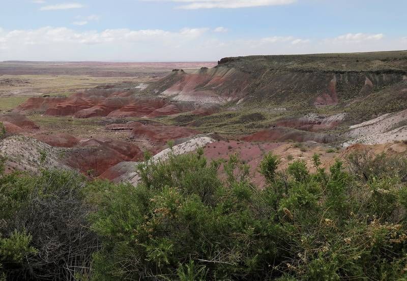 Une très bonne nuit passée à Quaking Aspen mais ce matin beaucoup de vent comme depuis plus d'un mois maintenant. Mais cette fois-ci il souffle bien plus fort et c'est avec difficulté que nous allons prendre la route vers l'ouest en direction de Flagstaff. Nous passons par les 'Petrified Forest National Park" et tentons une sortie en dehors d'Hugo au "Visitor Cenrter". Il faut s'accrocher, les portes s'ouvrent difficilement car le vent les poussent, nous finissons malgré tout par entrer pour poser quelques questions aux rangers et notamment sur le temps des prochains jours. Aie aie aie, toujours le vent et encore plus froid, bon nous sommes rassurés!