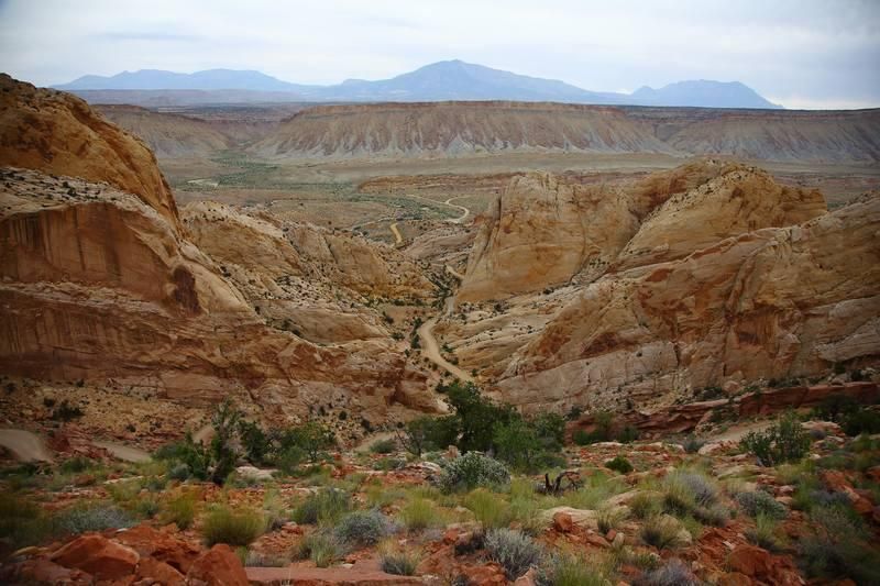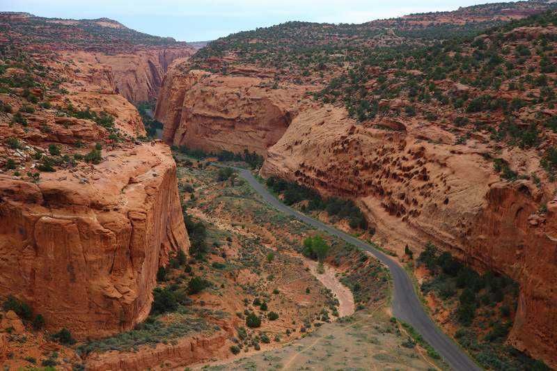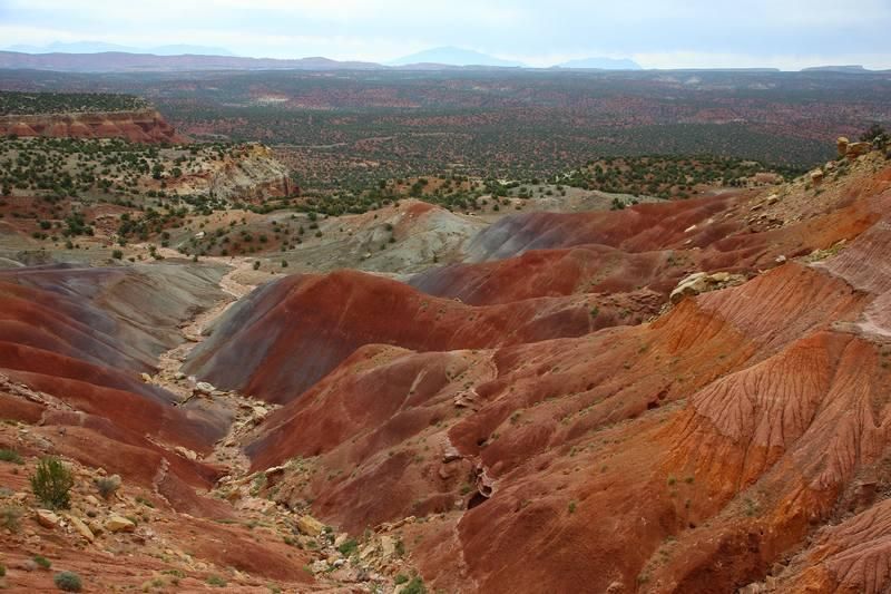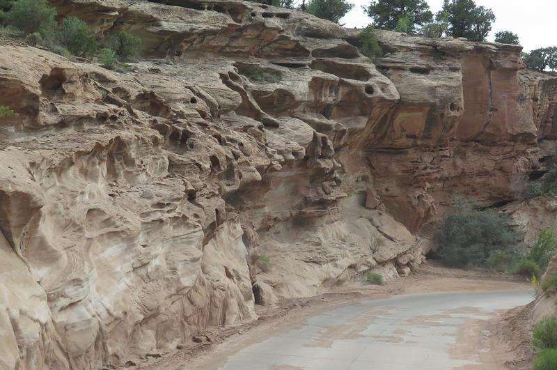 Nos amis nous rejoignent et nous partons tout de suite sur la "Burr Trail Road" qui est goudronnée sur une bonne partie, nombreux stops photos mais sans soleil nous ne sommes pas emballés. Nous rejoignons très vite la "Bulfrog Road et la remontons toujours sous un ciel d'orage et très chargé, là aussi nombreux stops photos mais toujours aussi peu motivé par la lumière très sombre.