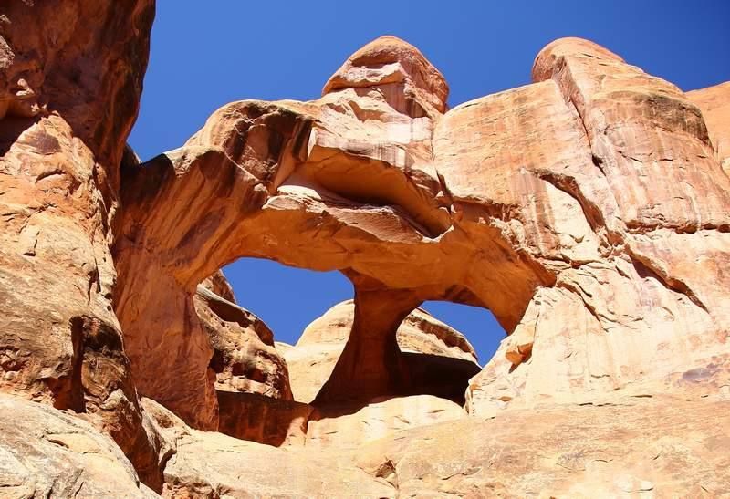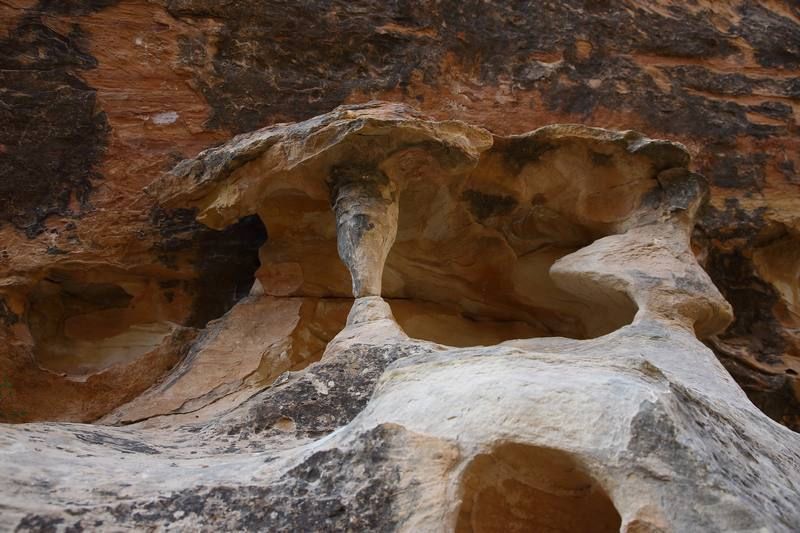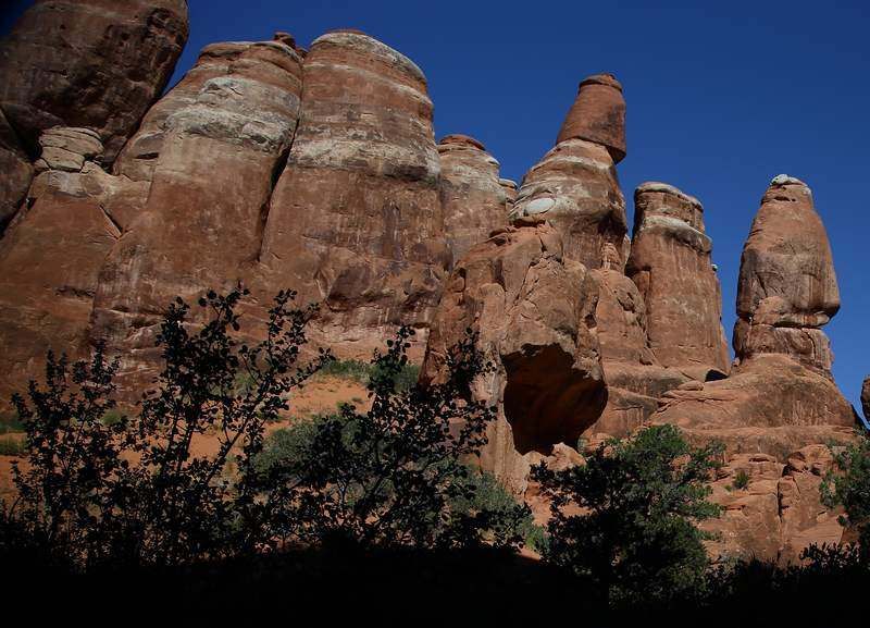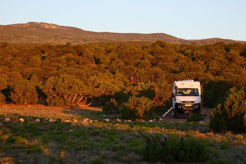 La balade va durer trois heures et sera très sympa, nous y voyons des arches, des bridges, des formes de rochers toutes particulières et nous sommes presque au frais car le soleil ne pénètre pas partout. Nous serons de retour vers 12h30 au parking et faisons la visite d'Hugo pour ceux qui ne le connaissent pas encore. Petite séance photo à l'extérieur et nous allons quitter nos amis qui eux restent sur Moab encore quelques jours, quant à nous, nous allons aller faire le plein de ravitaillement, trouver un distributeur de billets et prendre la route vers "Gobelin Valley" où nous bivouaquerons ce soir. Demain nous voulons être assez tôt sur "Capitol Reef" pour trouver une place au campground. Nous quittons Moab vers 15h45 et serons sur le lieu de bivouac à 17h45, nous sommes trois véhicules avec chacun au minimum 1000 mètres carrés. La température étant redescendue il est agréable d'être dehors à l'ombre d'Hugo, la nuit sera douce.
